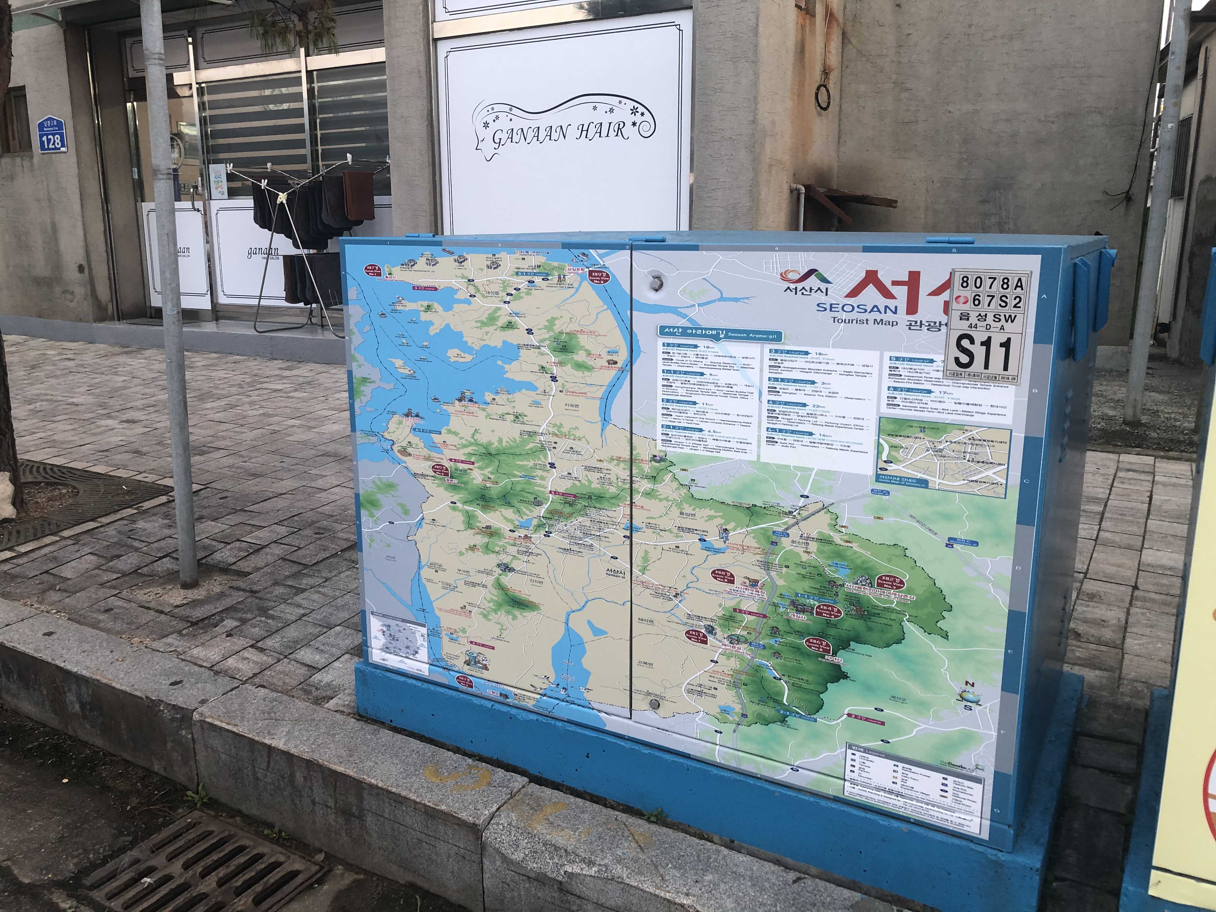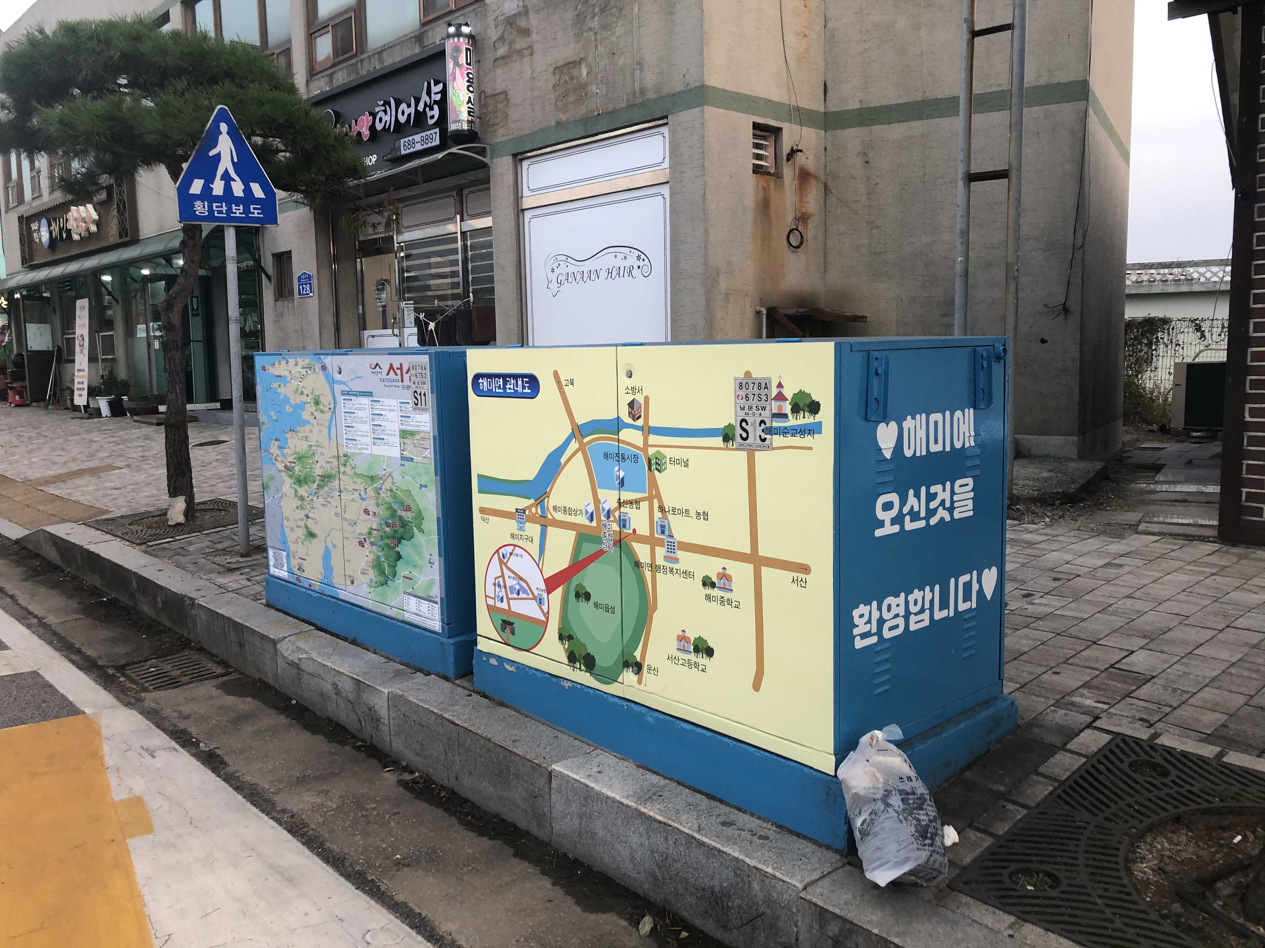 커피베이의 맞은편에는 이렇게 전기박스를 해미읍내 지도로 꾸며놨다. 커피베이 사진을 찍으면서 발견했는데, 센스 있는 데코레이션 같아 감탄했다. 이걸 보면 해미읍성 주변에 대한 지리를 얼추 짐작할 수 있다.