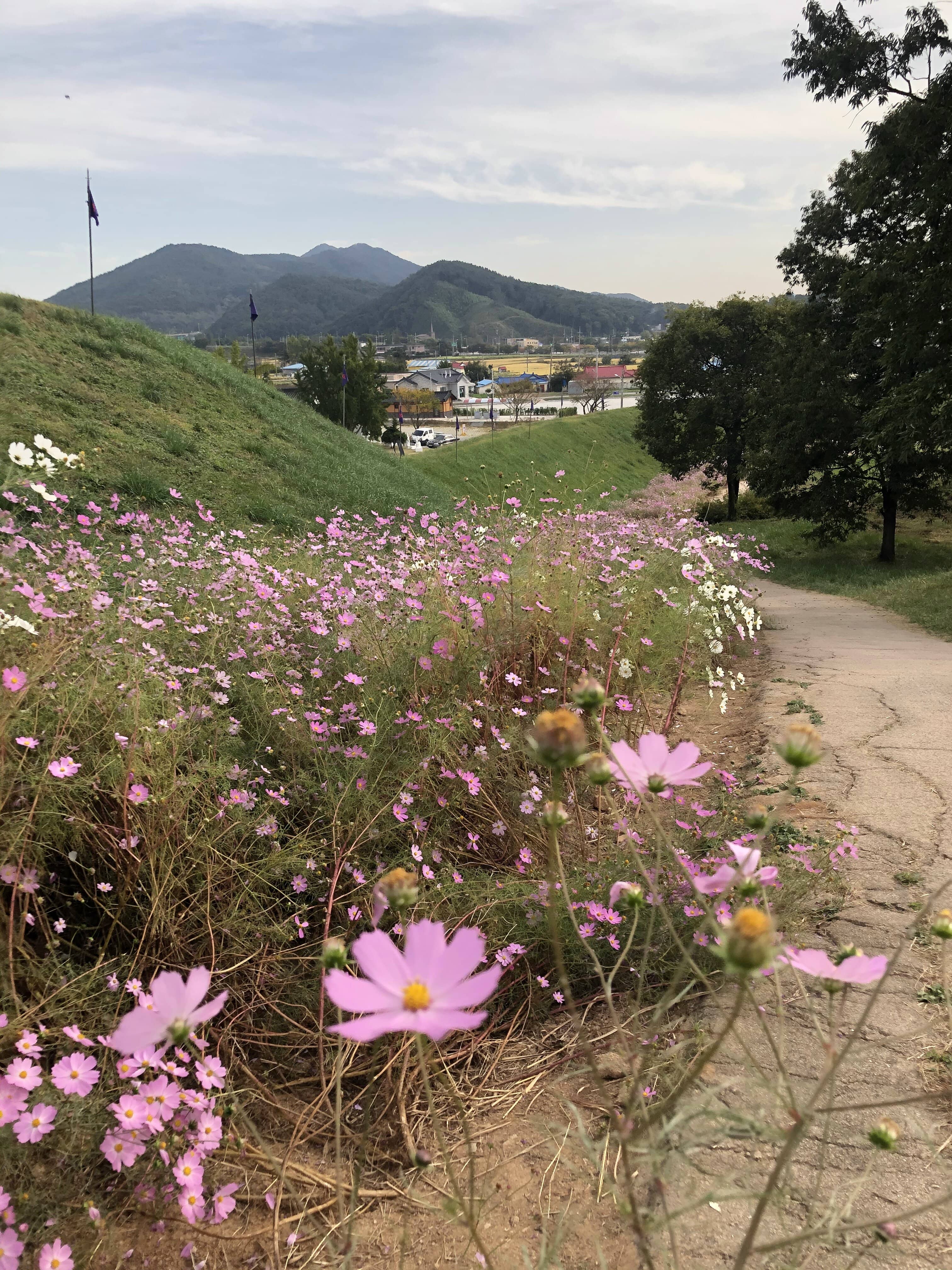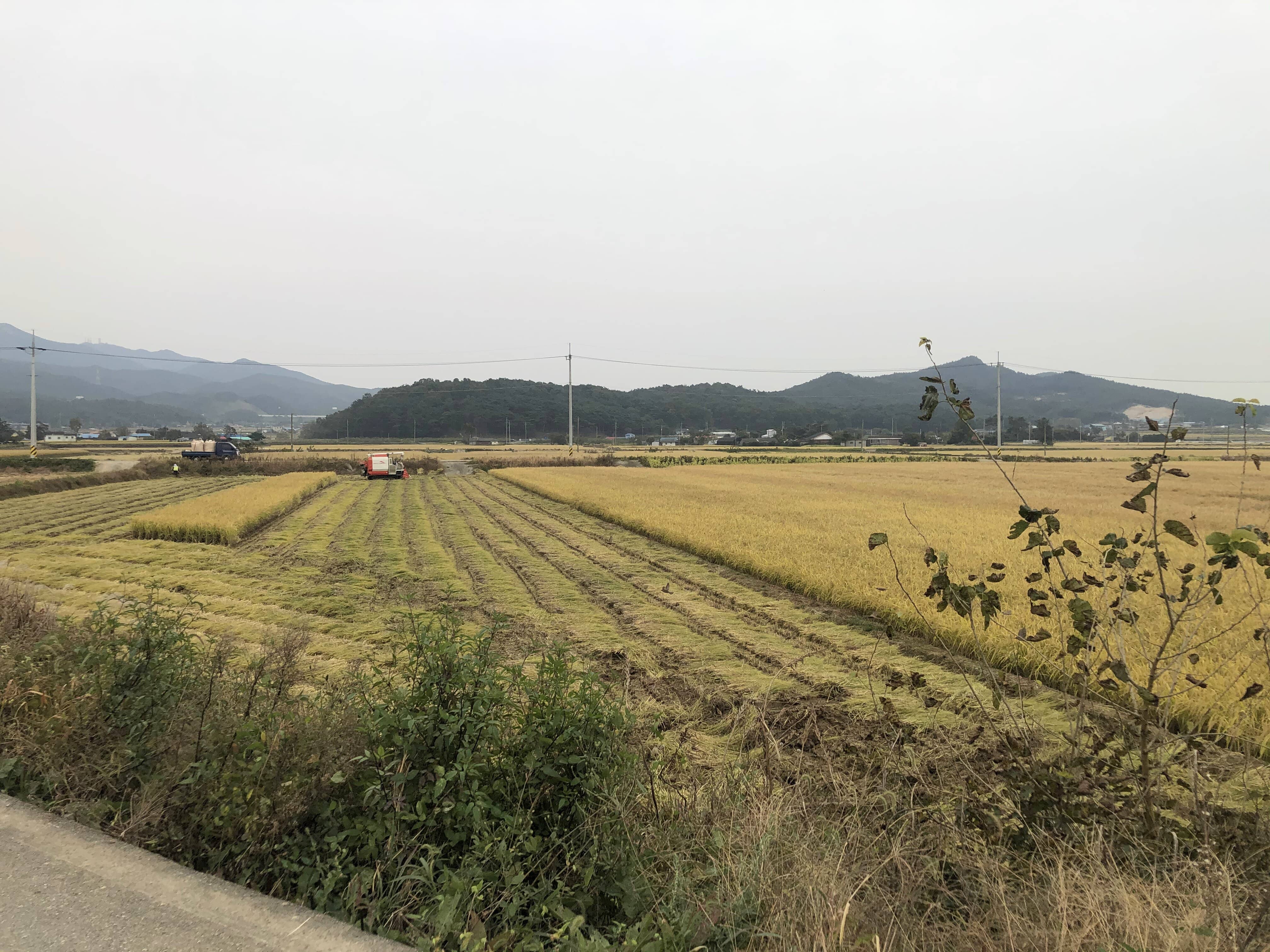 해미읍성엔 코스모스가 만발했고, 논에선 어느새 추수를 하기 시작했다.