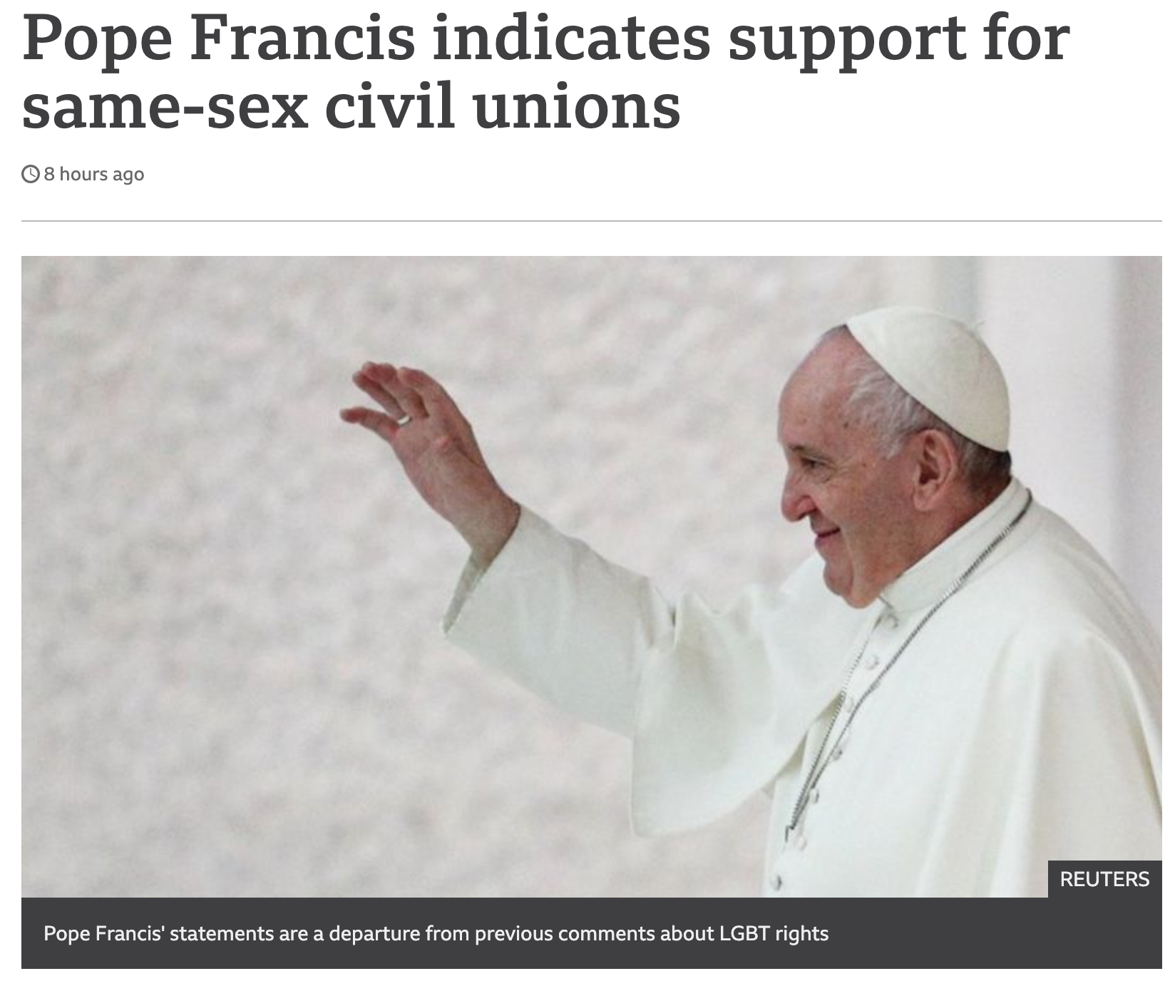 [BBC 기사 속 영어] 프란체스코 교황 LGBT의 civil union 인정해야..