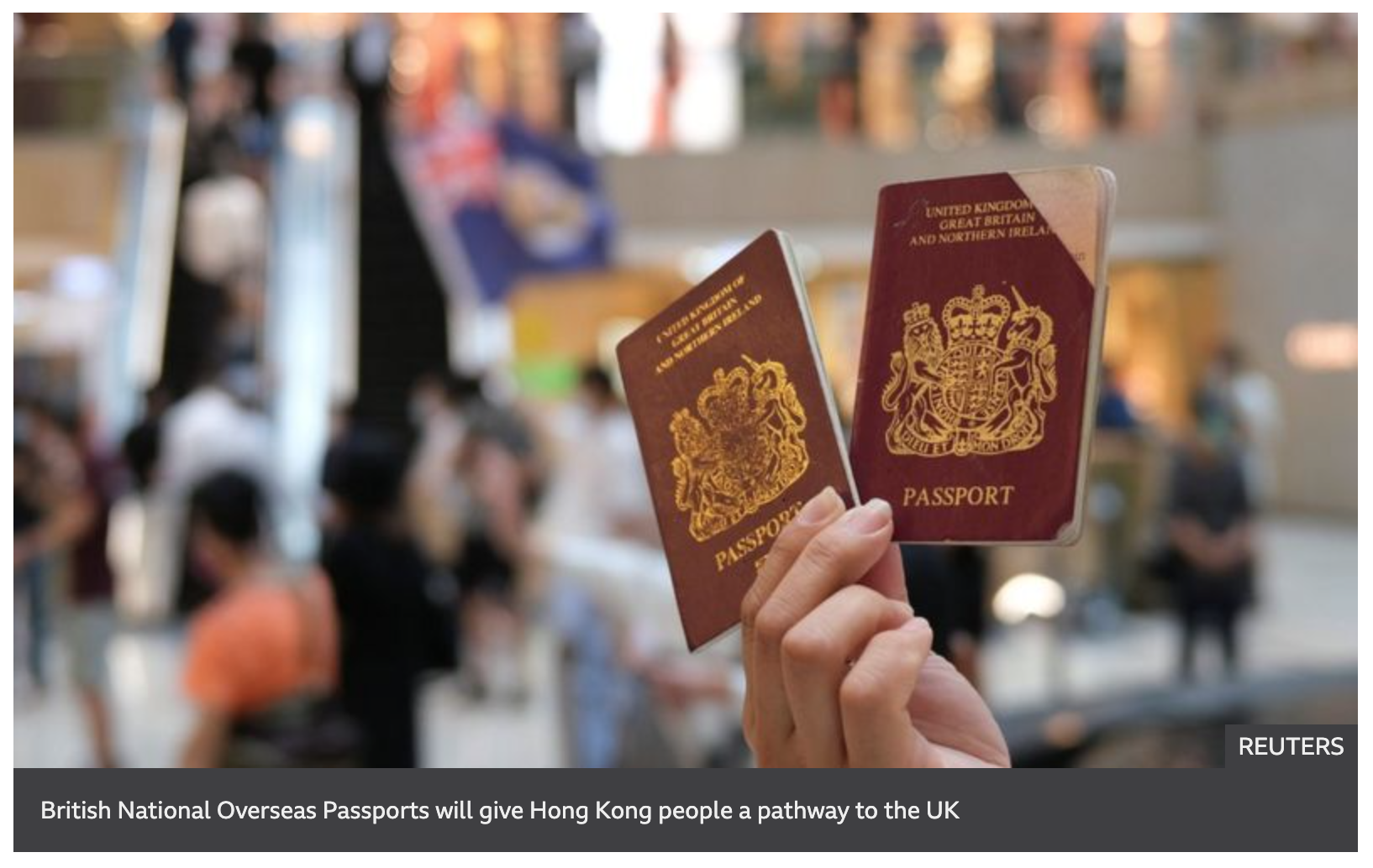 며칠 전 BBC 기사에 중국은 영국에게 홍콩의 BNO여권 소지자에 대한 영국의 시민권 발급을 중단할 것을 경고했다는 내용이 실렸다.
