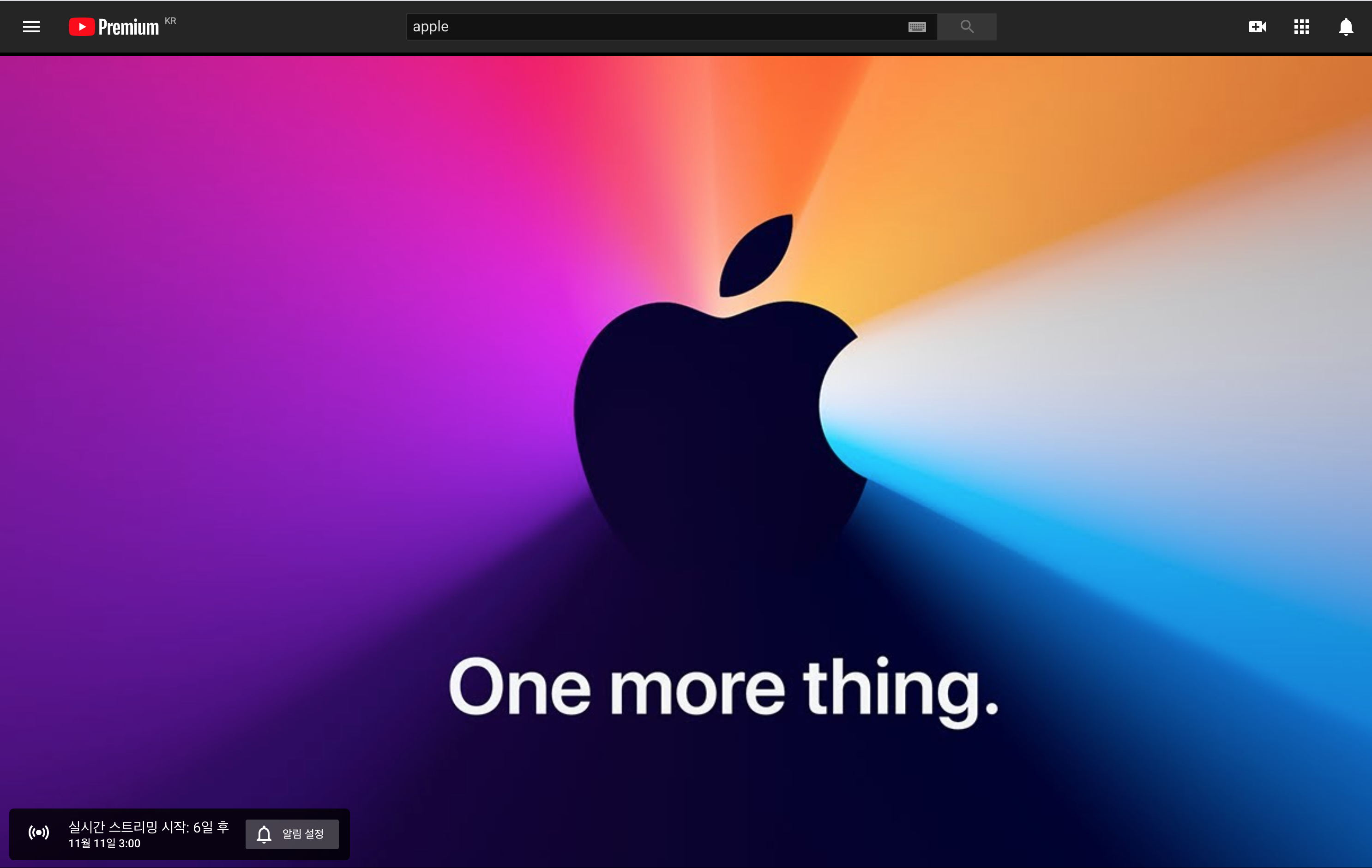 애플은 아직 올해의 끝을 더 붙잡고 싶은 모양이다. 마치 코로나로 지친 세상에 약간의 즐거움을 더 선사하기라도 할 듯 새로운 제품을 소개할 이벤트 공지를 열었다. 11월 10일, 다음주 화요일 PST으로 오전 10시니까 한국시간으로는 다음날 새벽 3시에 이벤트가 열리는 것이다. 유튜브의 애플 채널에서는 실시간 스트리밍 카운트 다운을 시작했다. 한국의 테크 리뷰어들에겐 희소식이 아닐 수 없겠다.