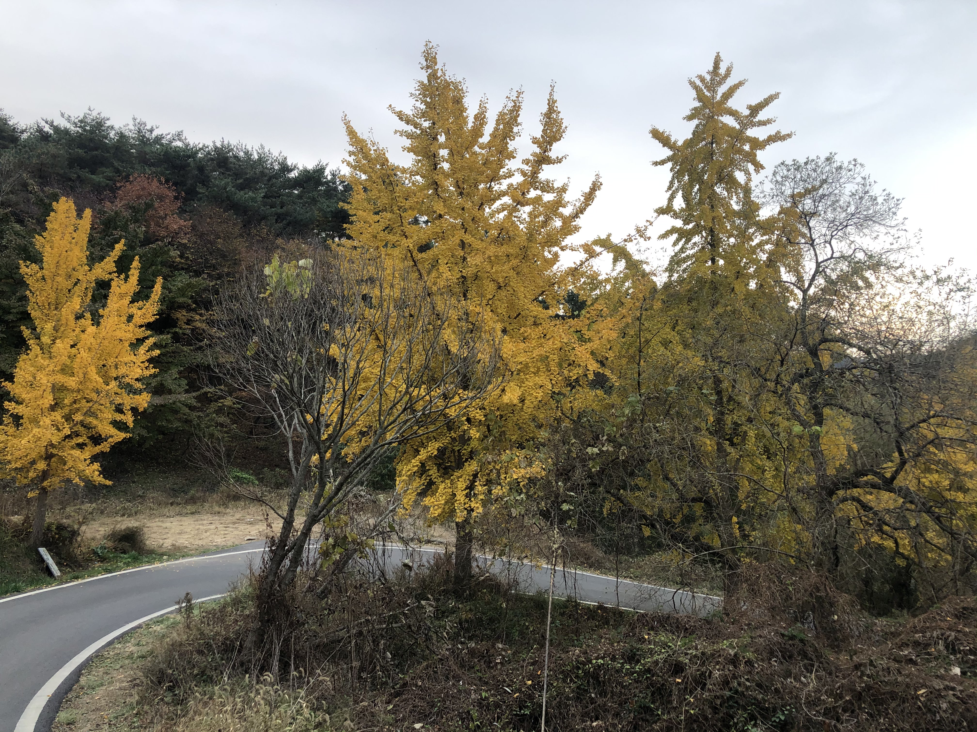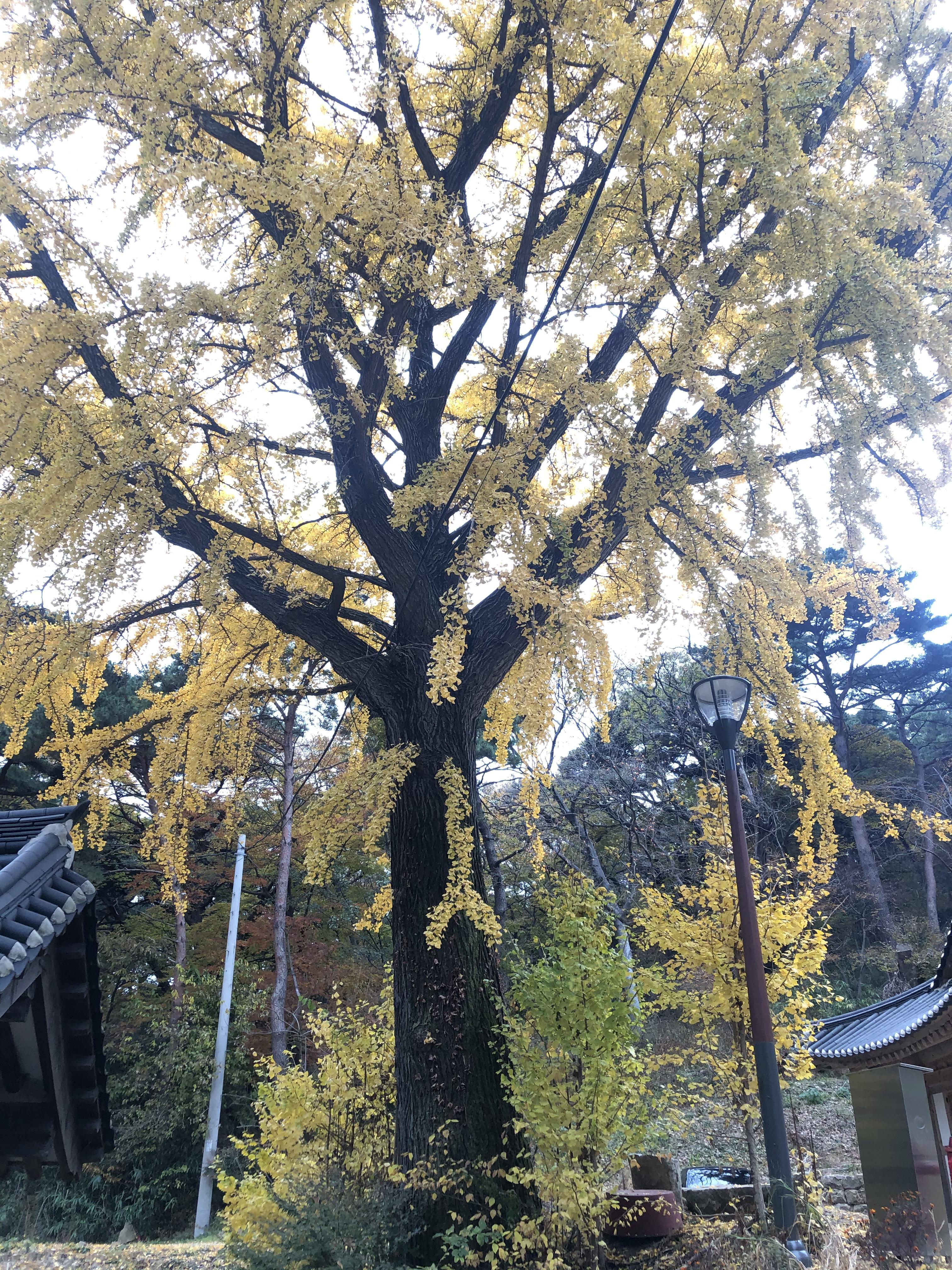 다 둘러보고 내려가는 길에 해우소에 들러 몸과 마음의 지꺼기를 다 내려놓아 본다. 가는길에 커다란 은행나무 하나가 꼿꼿이 서있다.