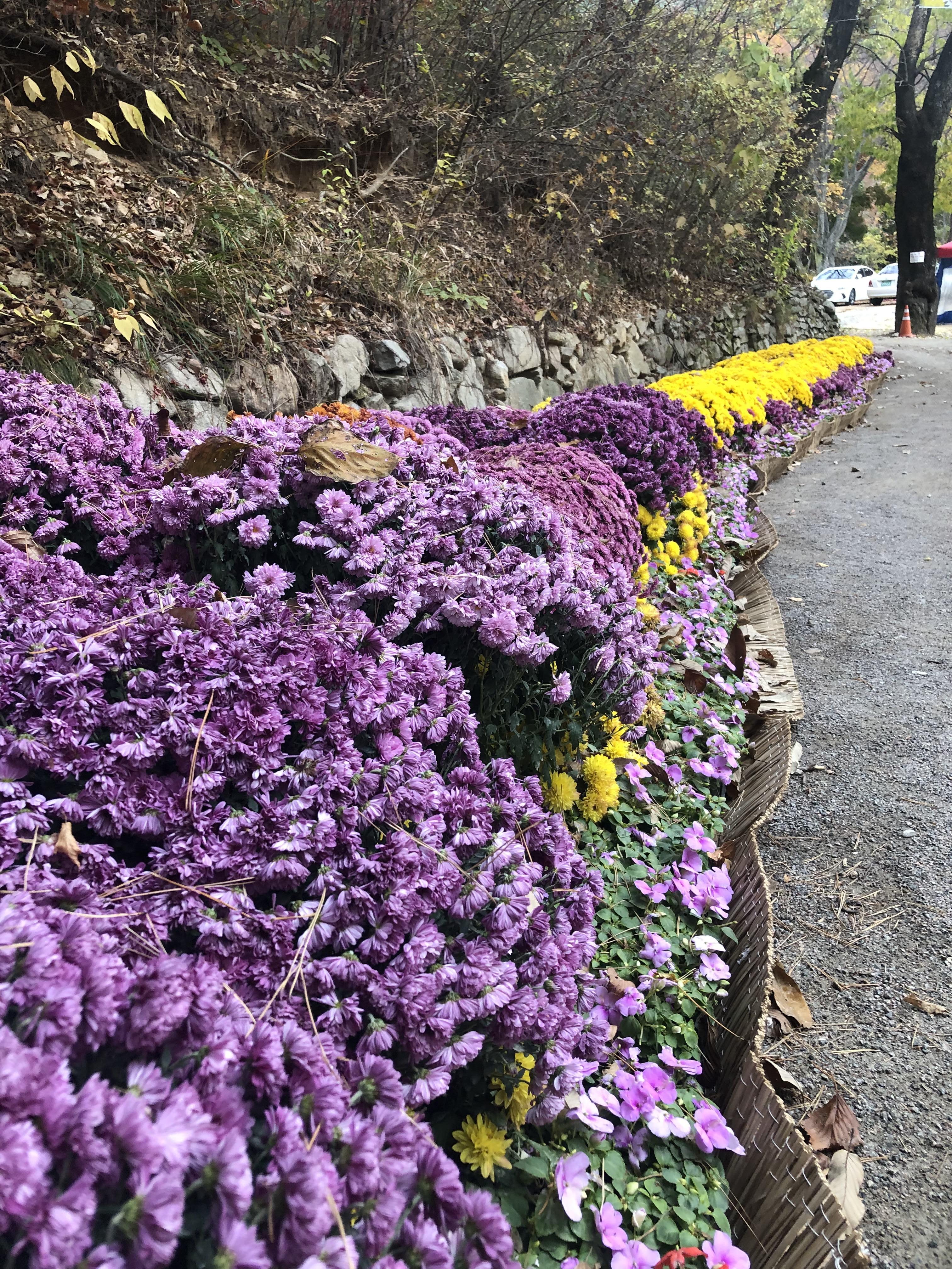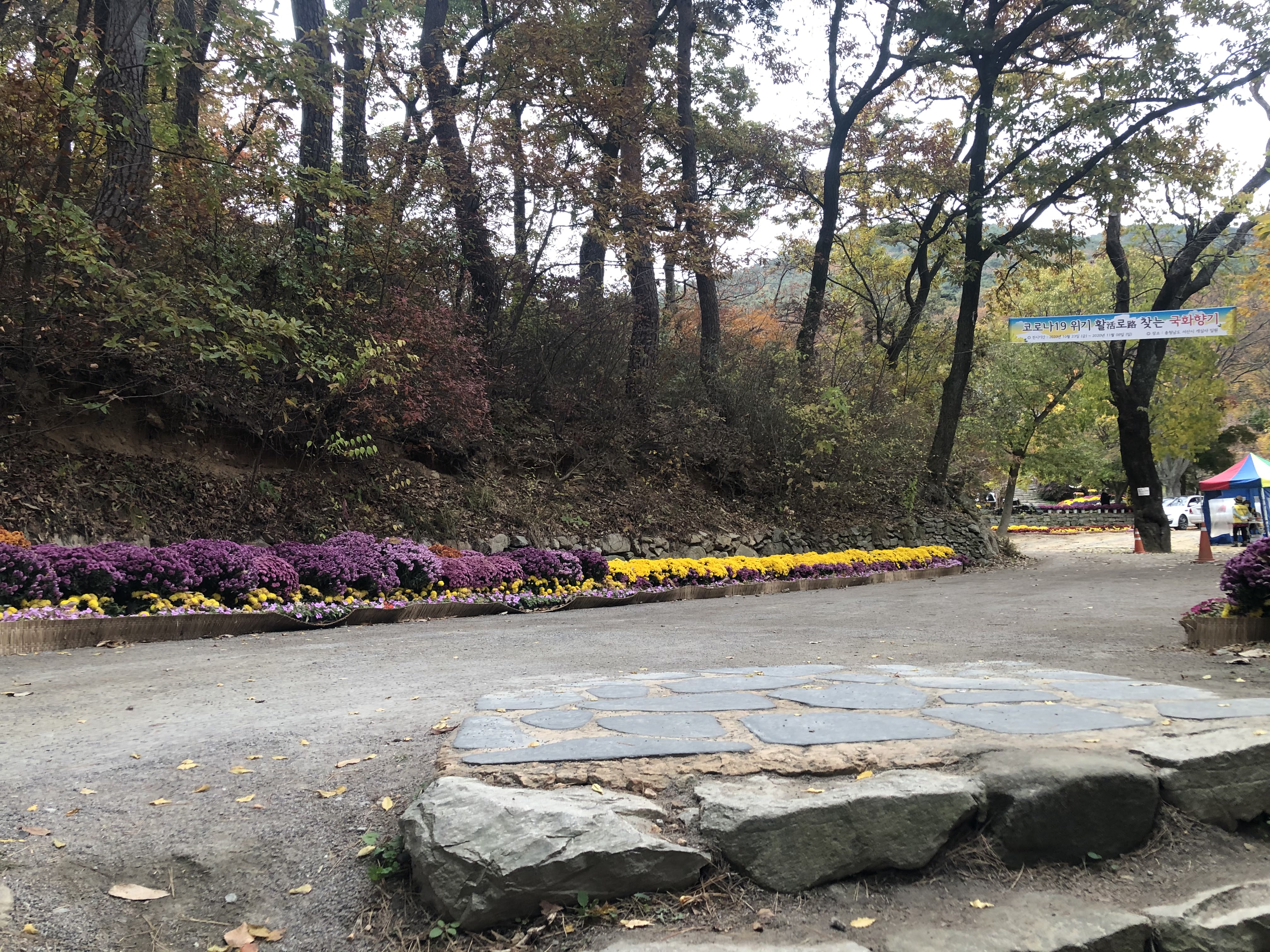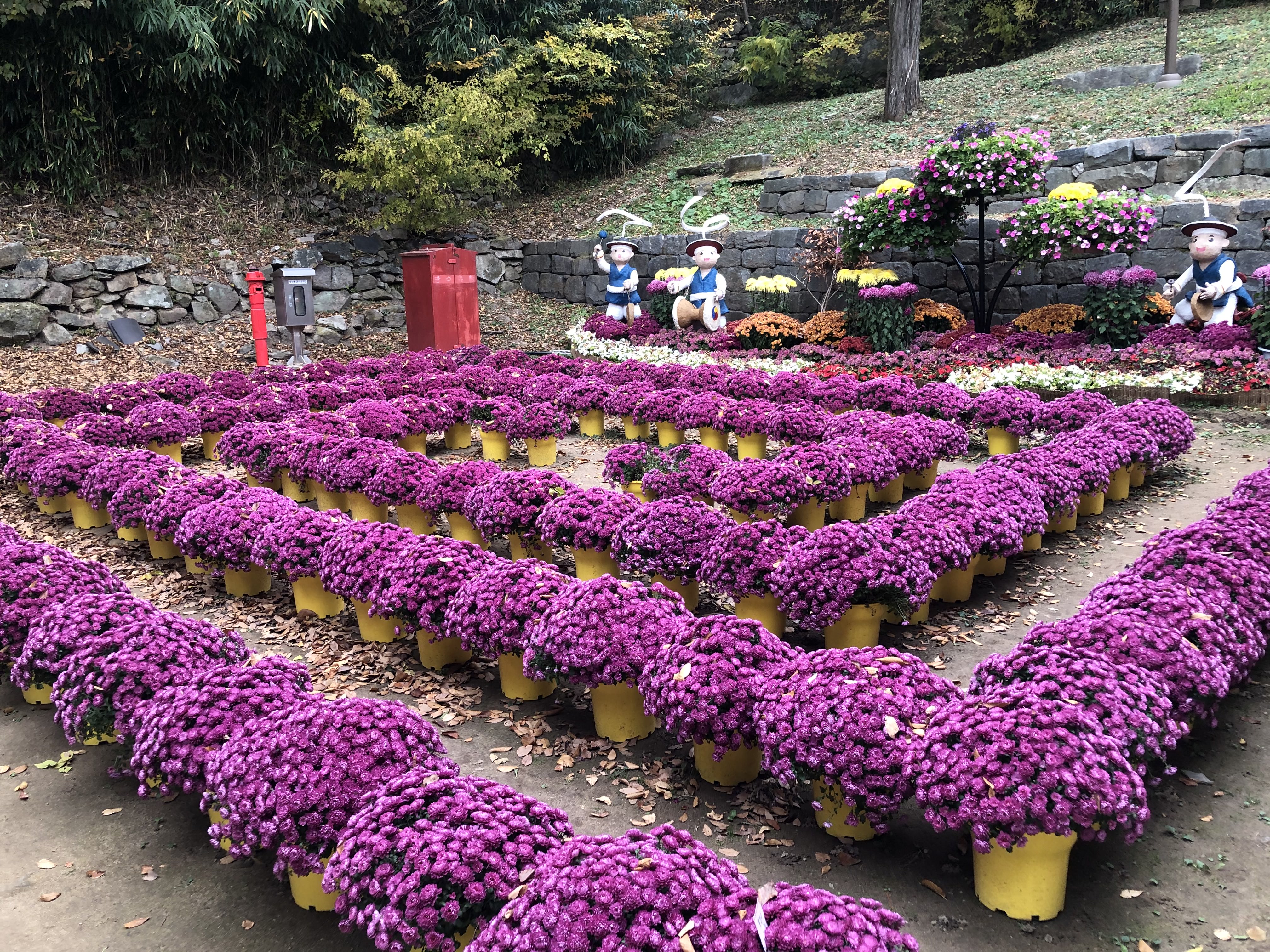 올라오면 국화로 수놓은 꽃길을 만나게 된다.