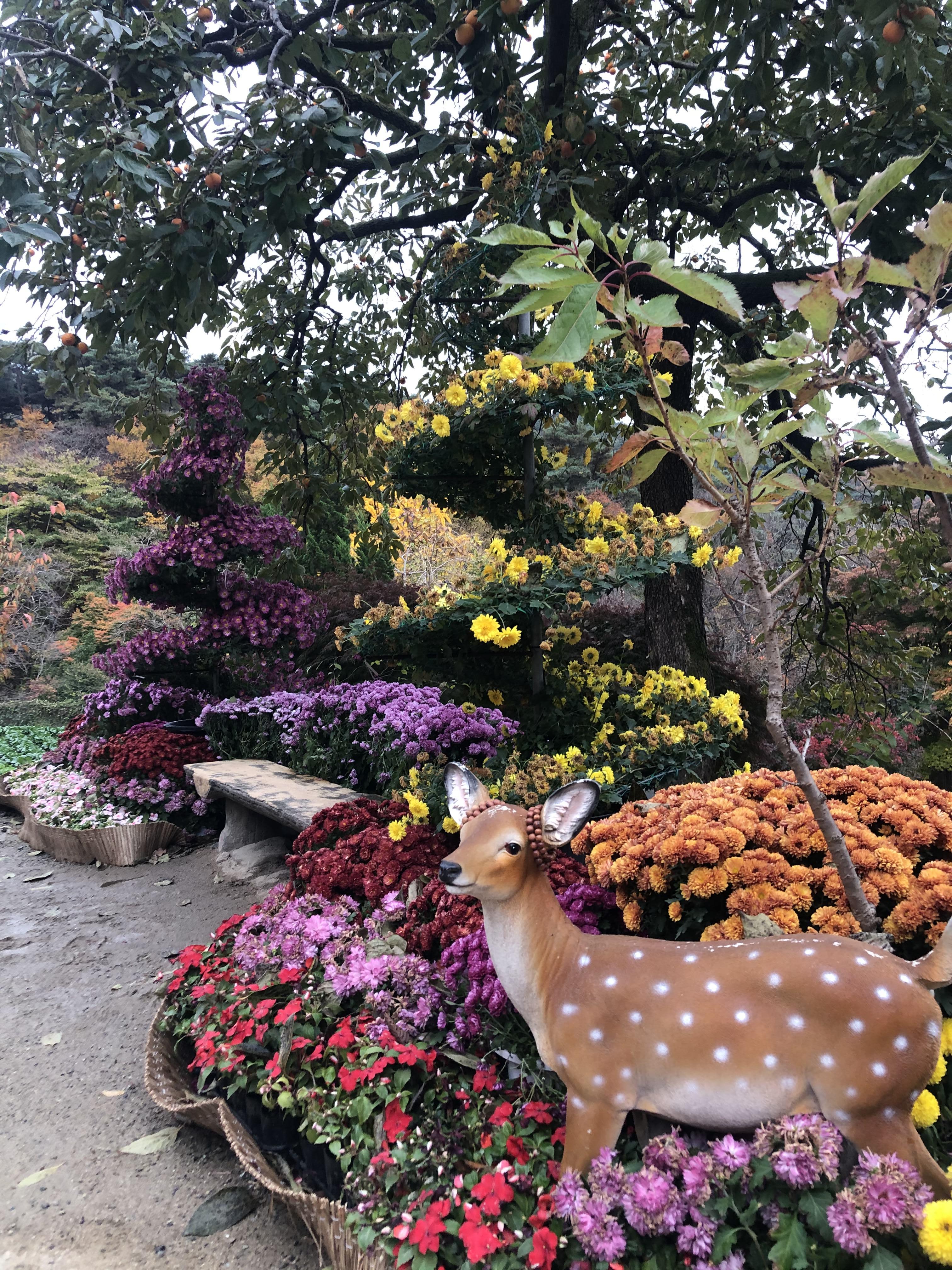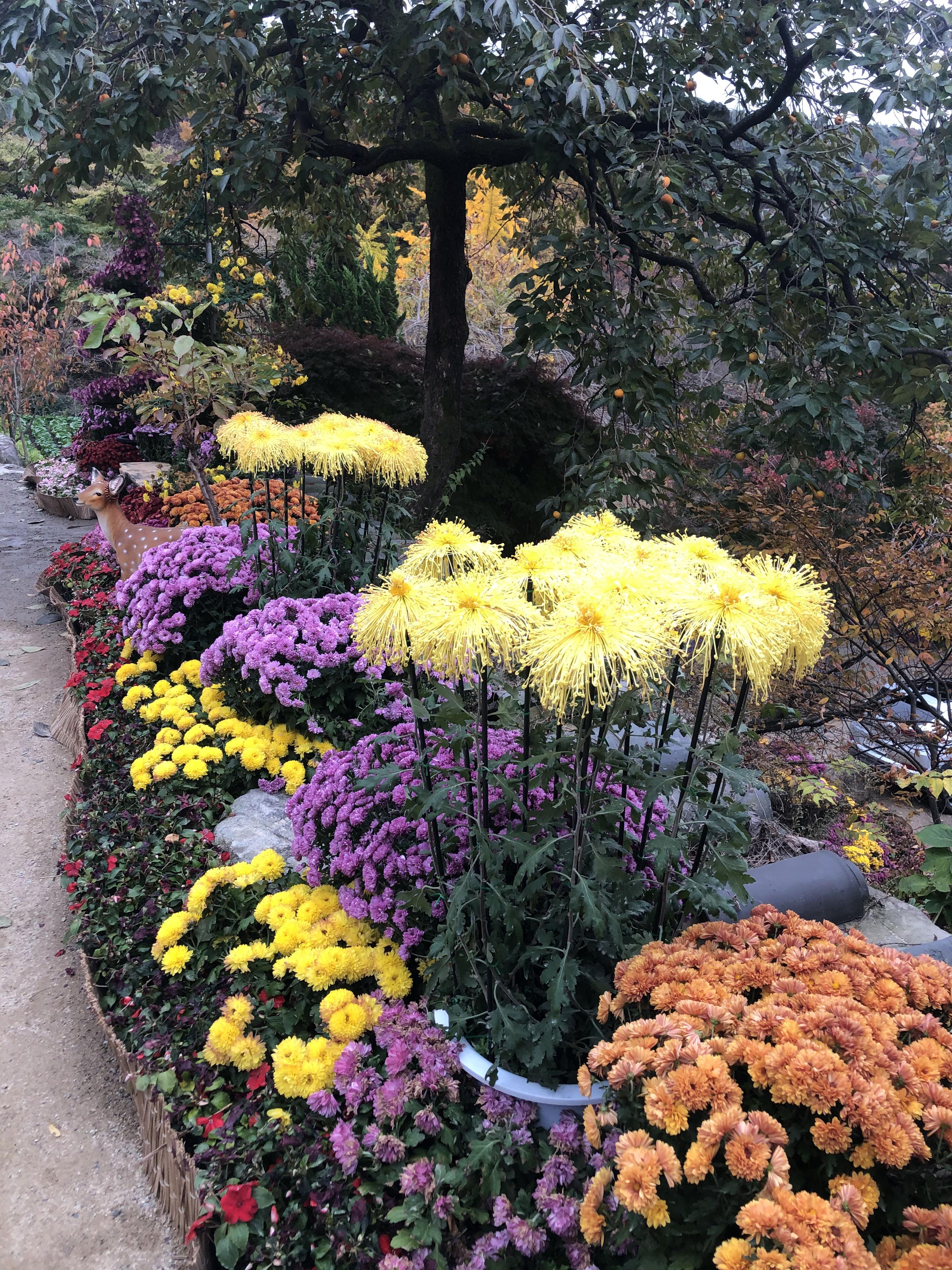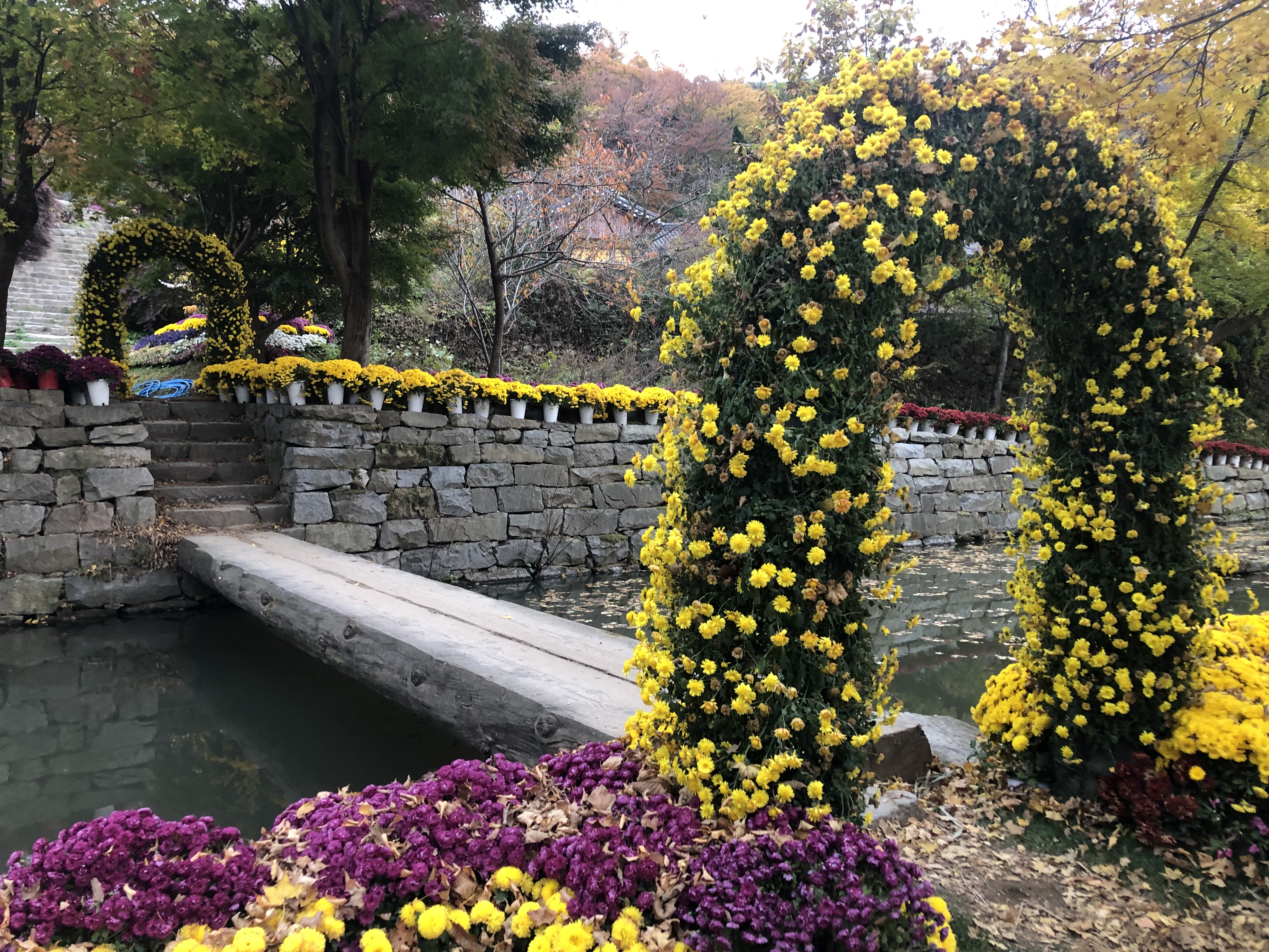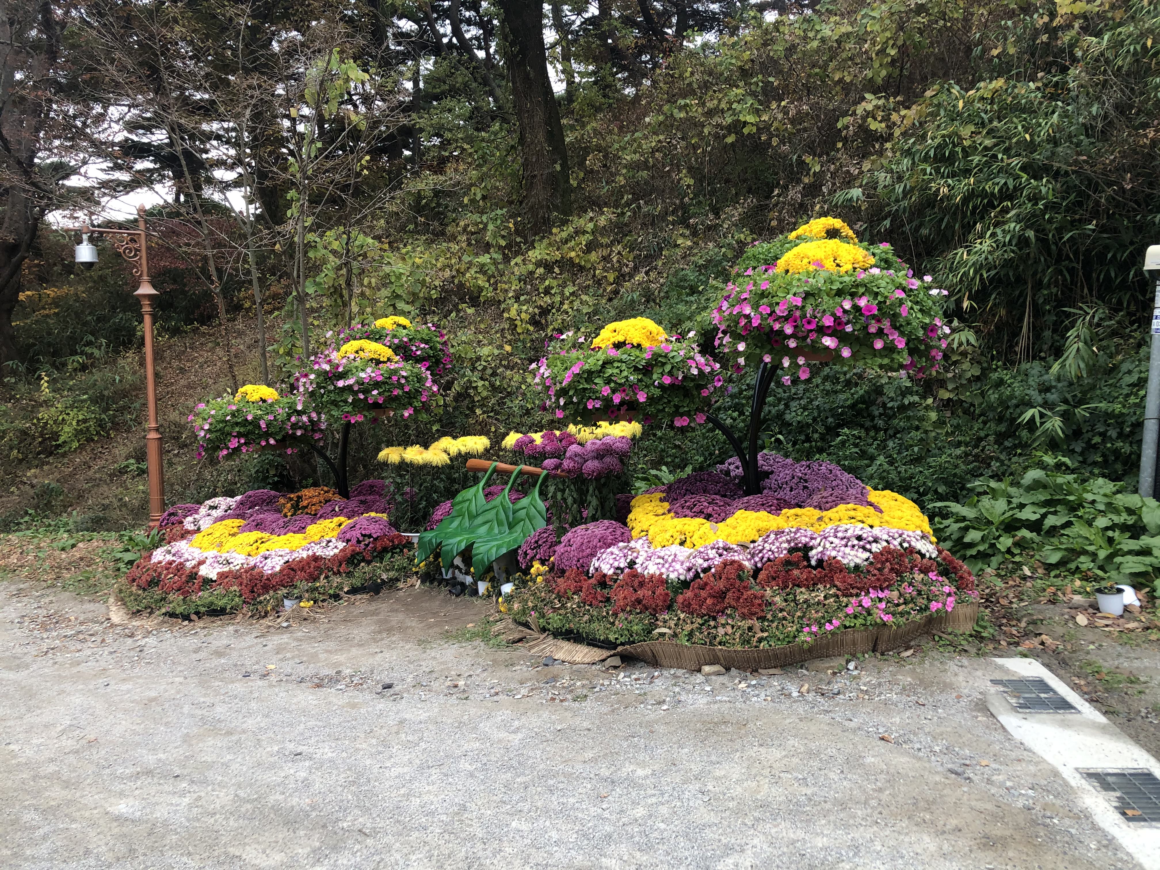 올라오면 국화로 수놓은 꽃길을 만나게 된다.