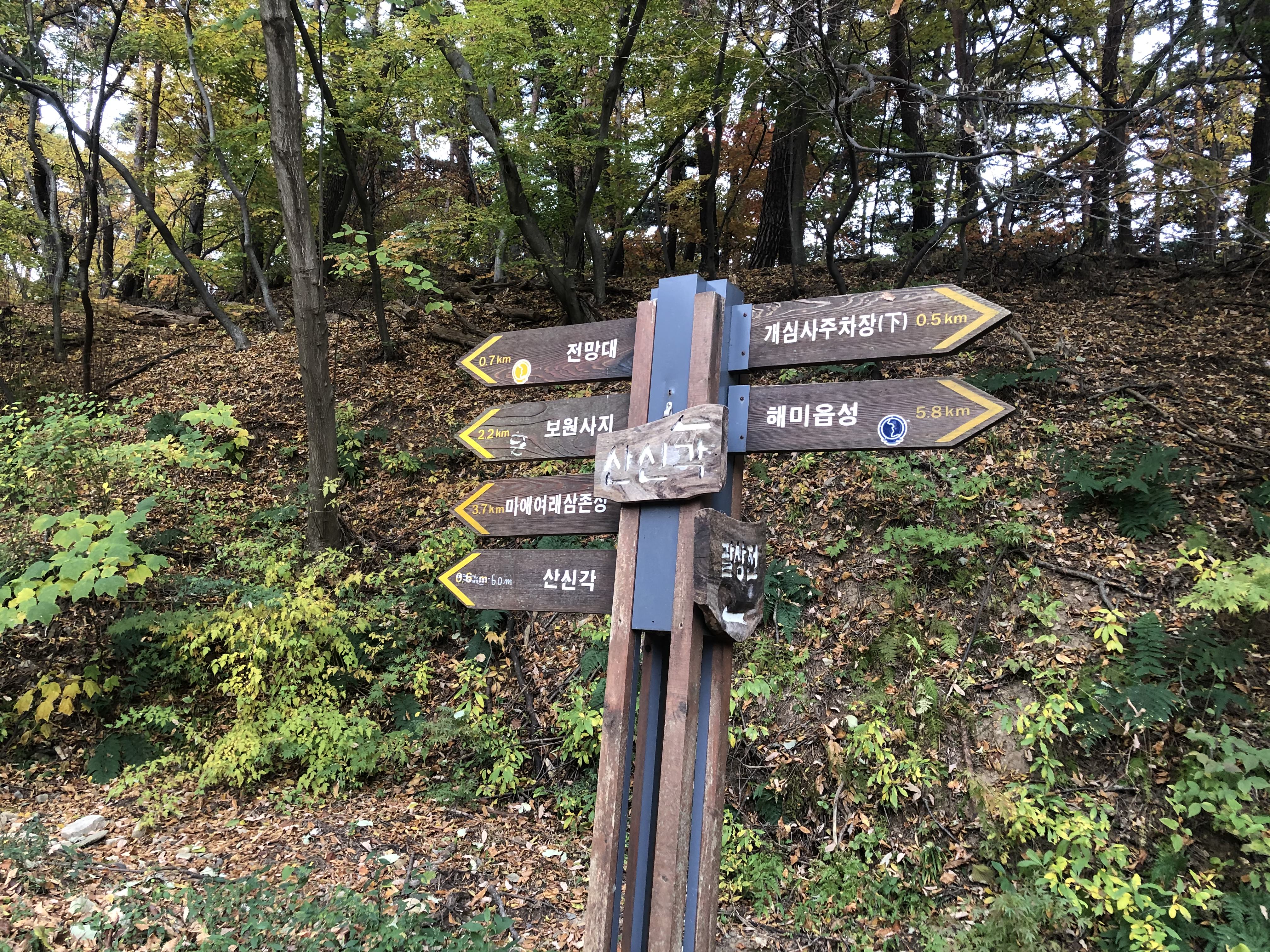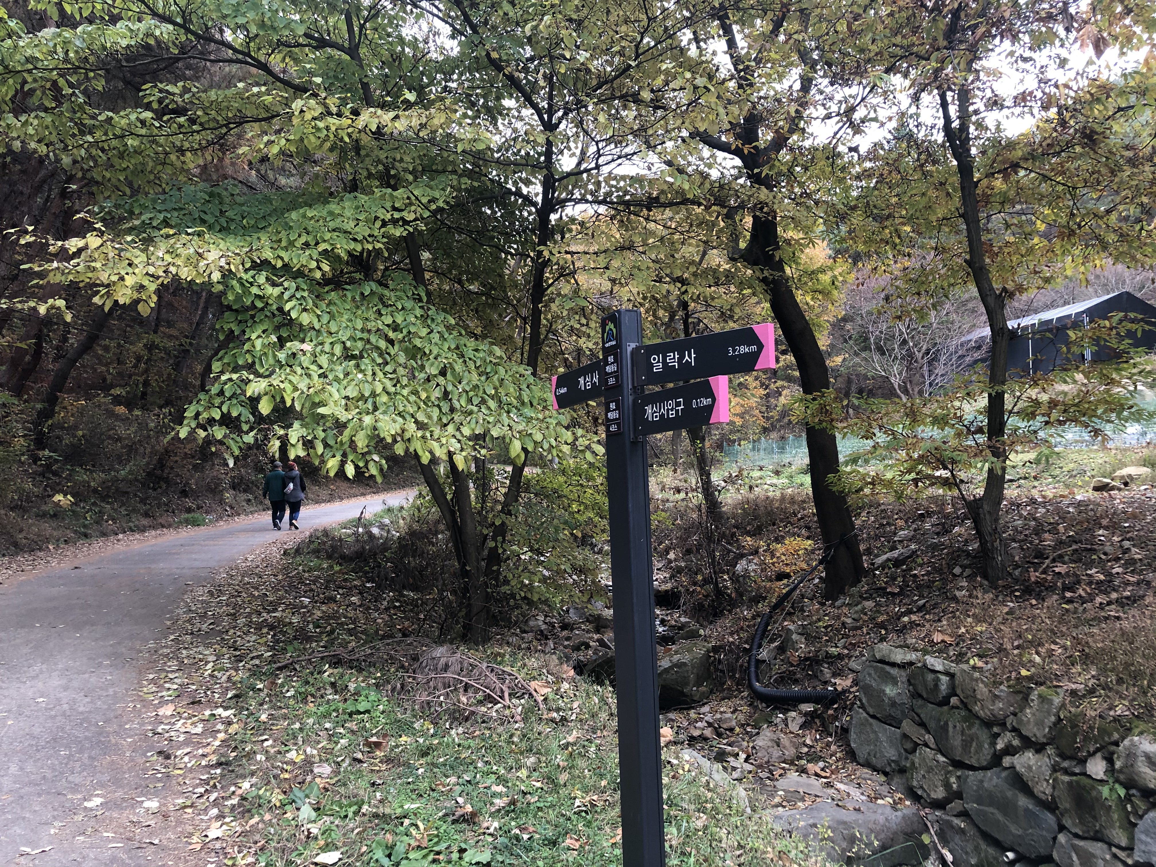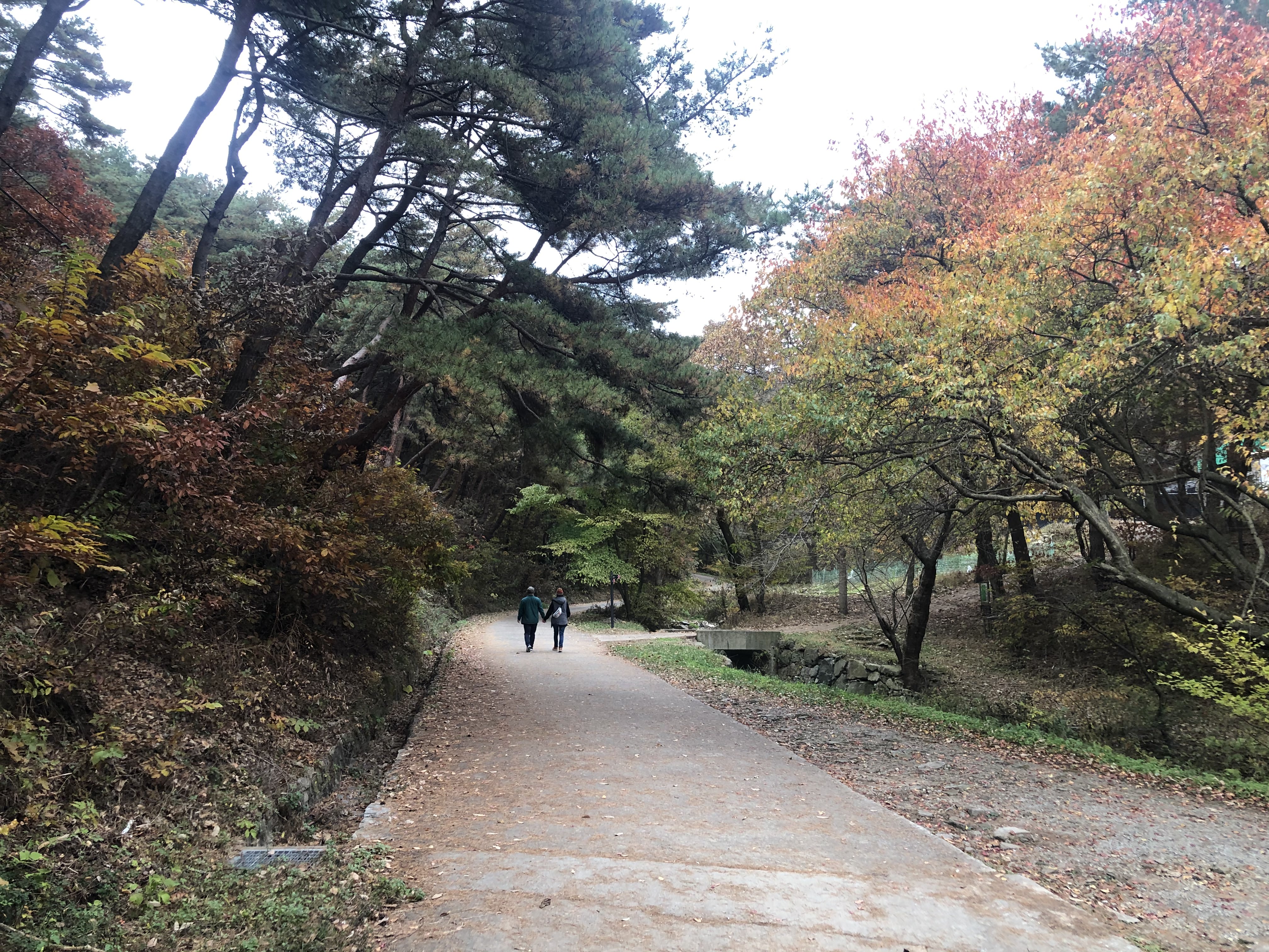 금요일이어서 사람 없이 한적한 산길에 저 앞에 중년의 커플이 손을 잡고 오르고 있다. 주변 단풍이 아주 예쁘게 물들었다. 아직 절정은 아닌 듯 하지만 그래도 뭔가 차분한 화려함이 산행을 즐겁게 해 준다.