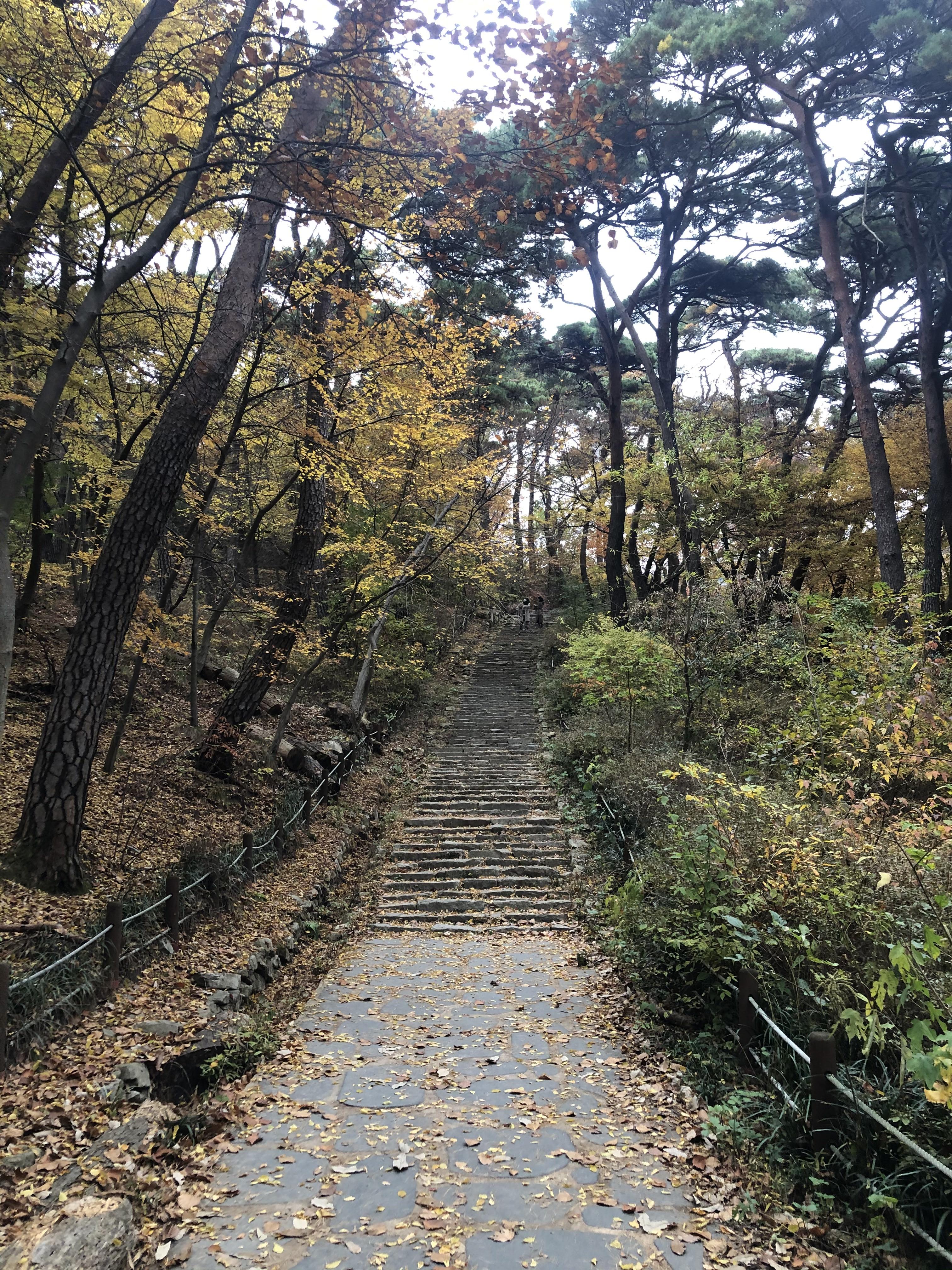 낙엽이 떨어진 돌계단을 따라 올라간다.