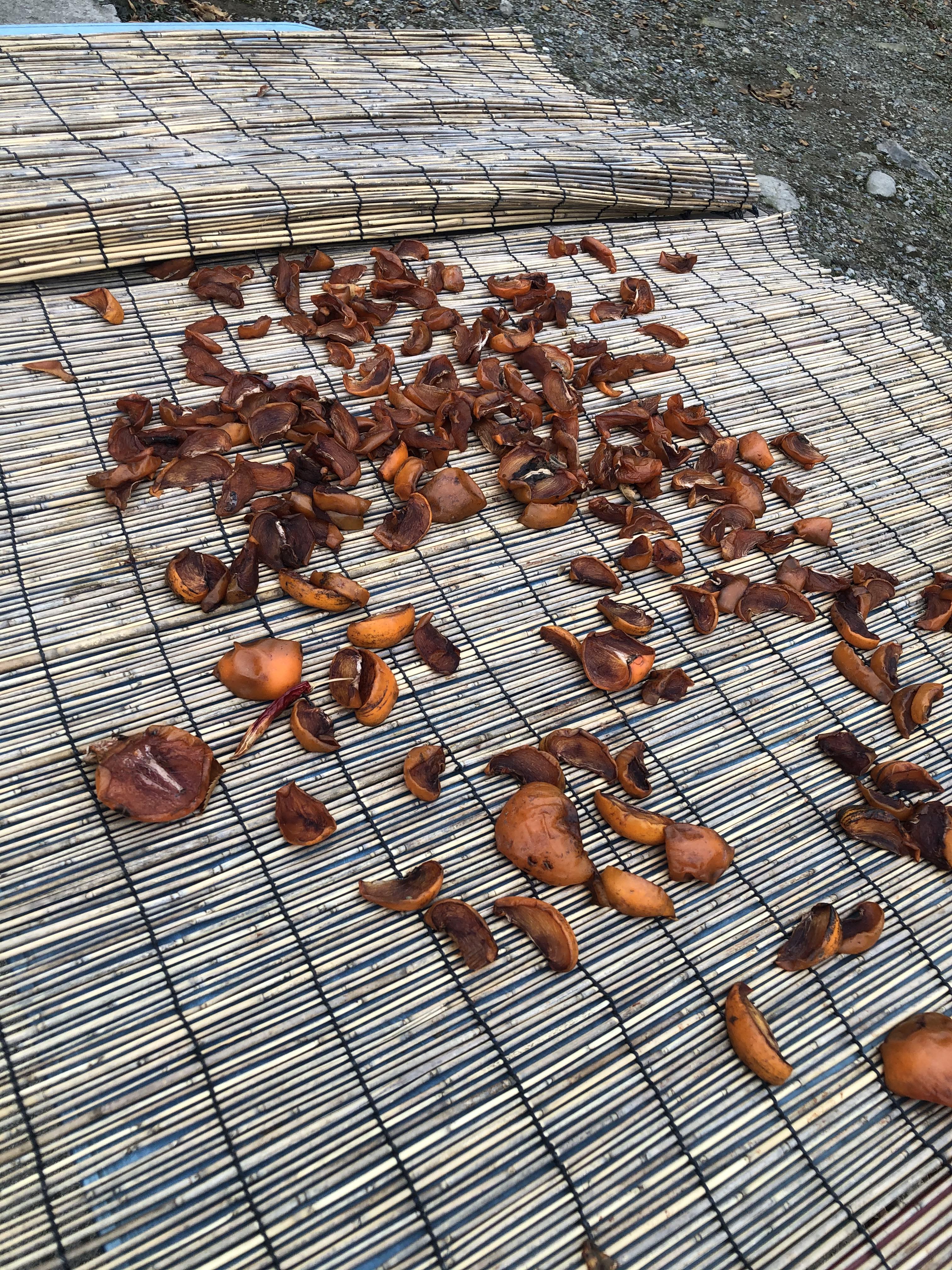 개심사 입구에 늘어선 장에서 맛있는 꽂감이 달게 말라가고 있다.