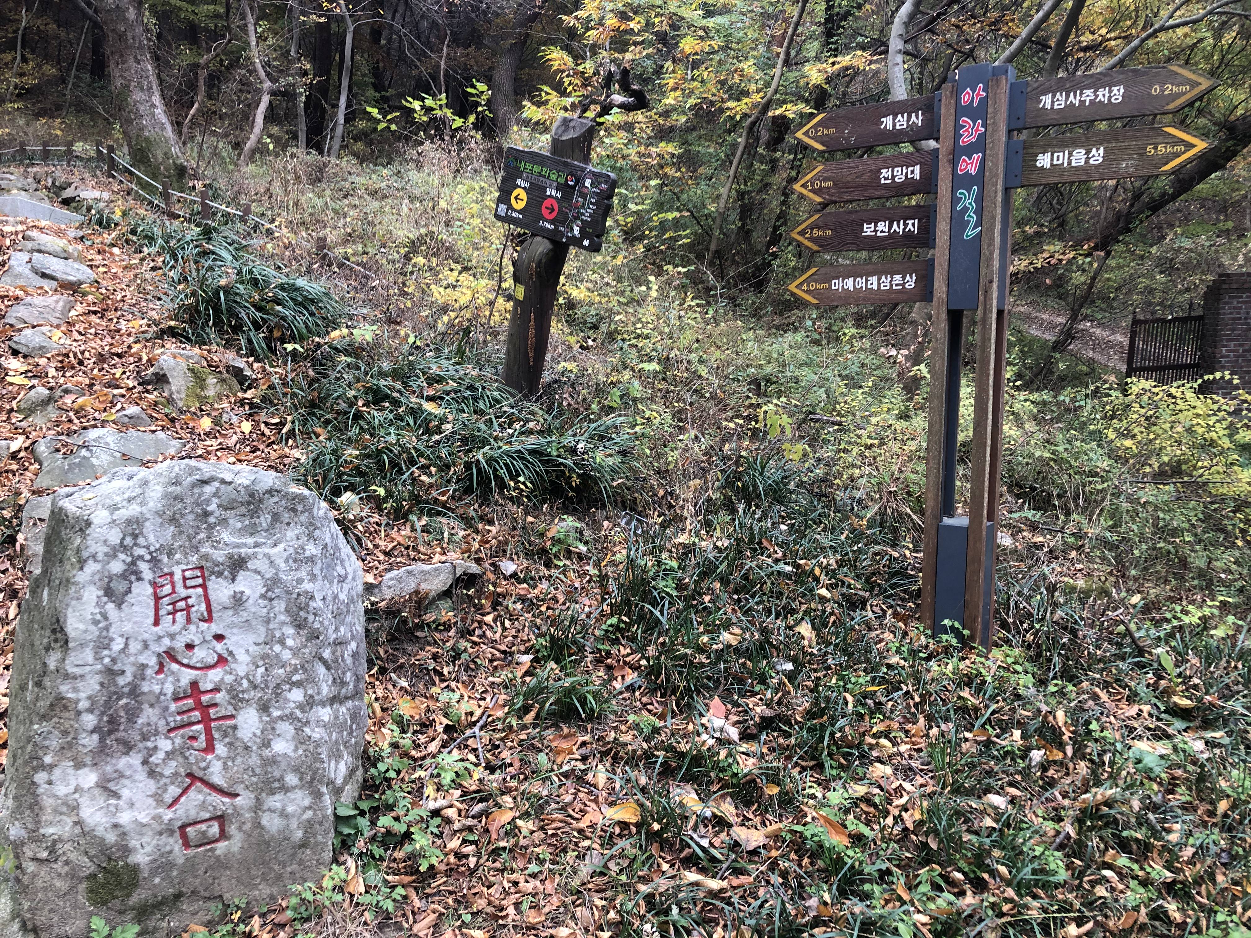 팁을 하나 말하자면 개심사를 오를땐 돌계단으로 가고 내려올땐 차가 다니는 완만한 길이 있으니 이용하면 무릎 아프지 않게 내려올 수 있다.