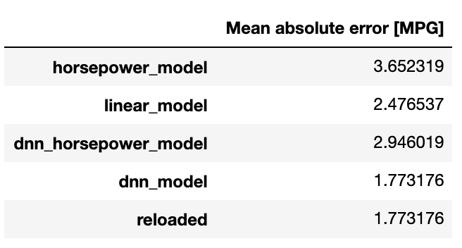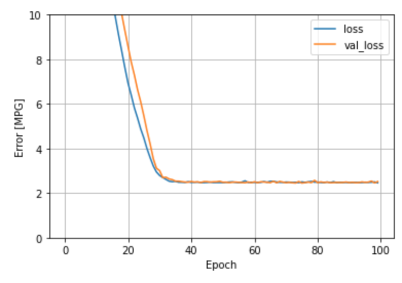 위 두 결과로부터 단일 feature로는 MPG의 예측의 정확도가 떨어지는 것을 확인할 수 있다.