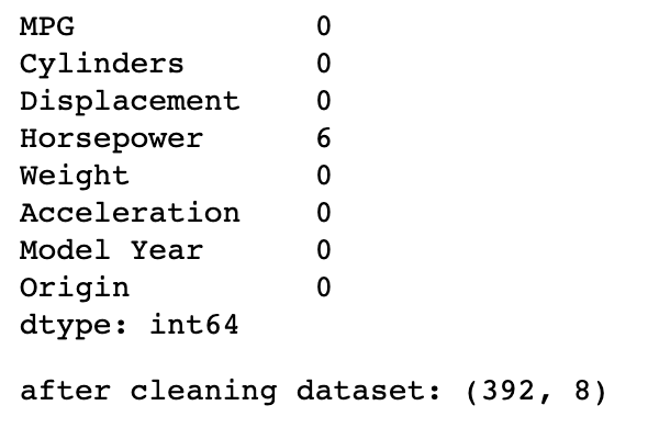 이 dataset에 NA와 같은 값을 가지는 요소가 있는지 확인한다. 이것은 타당한 값을 가지는 데이터를 모델 훈련에 쓰기 위함이다. isna() 매소드를 이용해 NA 데이터를 찾아내고 dropna()으로 드롭시킨다.
