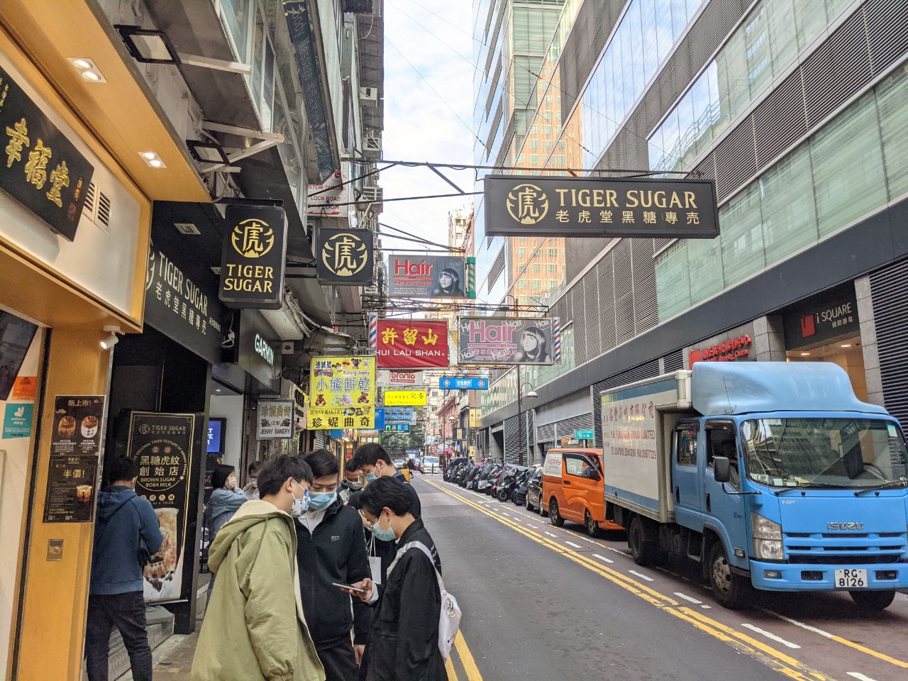 청킹맨션 맞은편에 tiger sugar라는 밀크티 가게가 있다. 유튜브에 보았기 때문에 간판이 눈에 들어왔다. 그렇지 않았으면 주변의 많은 간판과 함께 그냥 지나쳤을 것이다.
