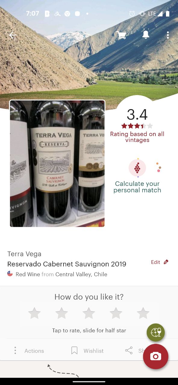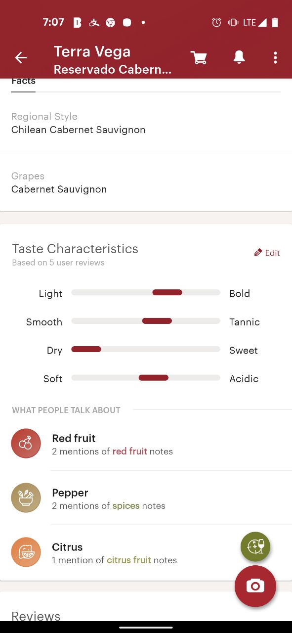 어플로 와인 라벨을 찍으면 정보를 찾아준다. 칠레산 까베르네 쇼비뇽이다. 바디감과 떫은맛이 중간 정도이고 드라이하고 산성이 있다고 나온다. 당도가 아주 없어 조금 아쉽기는 하지만 두병에 할인이 크게 들어가 담아본다. 와인에 대해서 잘 알진 못해도 이렇게 맛을 확인하고 사면 막상 열어서 마셨을 때 생길 수 있는 당혹감을 줄일 수 있어 좋다.