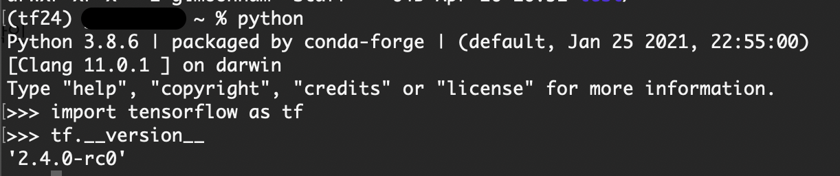 2021.04.27 - [Programming/Tips] - [Arm64] M1 맥북에 tensorflow 2.4 설치하기 (conda 환경) [Arm64] M1 맥북에 tensorflow 2.4 설치하기 (conda 환경) [Arm64] M1 맥북에 tensorflow 2.4 설치하기 (cond..