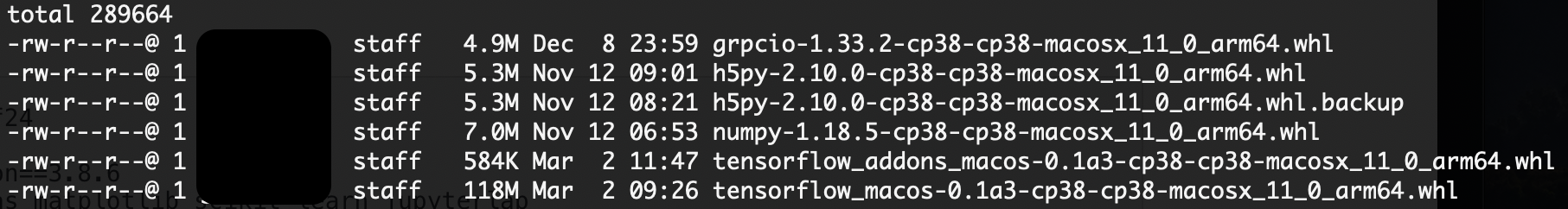 pip install --upgrade --no-dependencies --force numpy-1.18.5-cp38-cp38-macosx_11_0_arm64.whl grpcio-1.33.2-cp38-cp38-macosx_11_0_arm64.whl h5py-2.10.0-cp38-cp38-macosx_11_0_arm64.whl