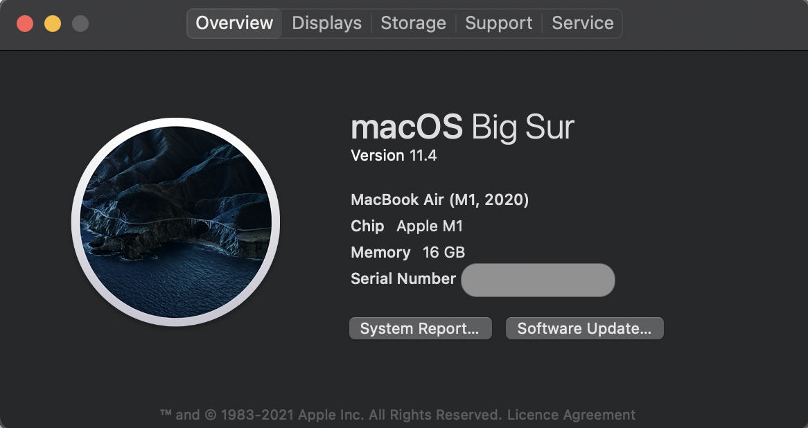 런타임의 비교를 위해 tensorflow 2.5 설치와 테스트를 한 맥북의 사양을 확인해보자.