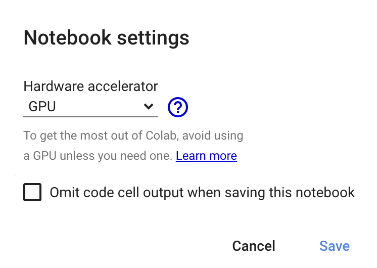 같은 코드로 Colab에서 두 가지 Hardware accelerator 설정으로 테스트해 본다.