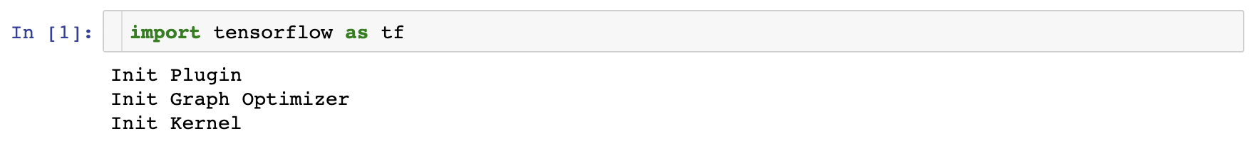 새로 만든 노트북에서 Tensorflow를 import 하여 설치가 잘 되었는지를 확인한다.