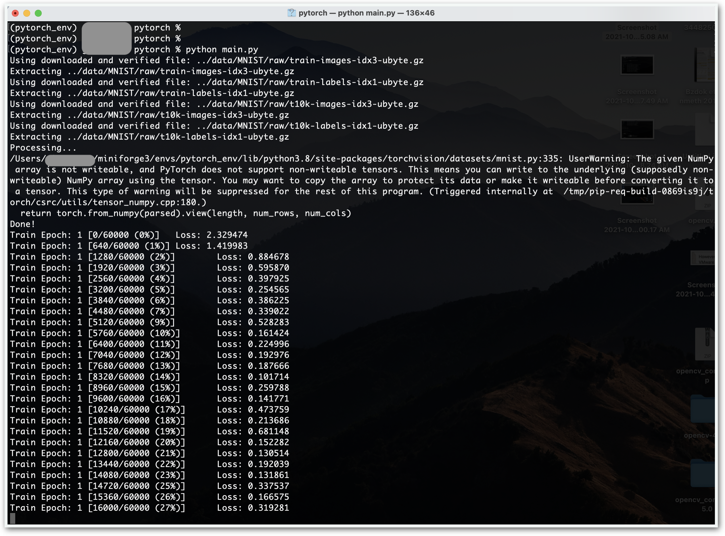 이번 포스팅에는 머신러닝시 tensorflow만큼 많이 쓰이는 pytorch를 설치하여 M1 맥에서 native 하게 실행하는 것을 정리해 보도록 하겠다. 크게 복잡한 단계는 없으니 쉽게 설치할 수 있다.