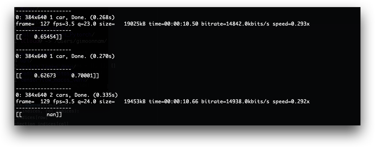 Yolov5 + deepSORT object tracking 알고리즘 실행 시 다음과 같은 에러를 만났다. 어떤 matrix에 숫자로 타당하지 않은 원소가 있다는 에러이다.