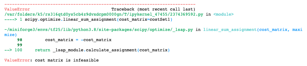 위 링크속 논의에 의하면 linear_sum_assignment()는 scipy의 method인데, 이 코드에 버그가 있다는 것이다.