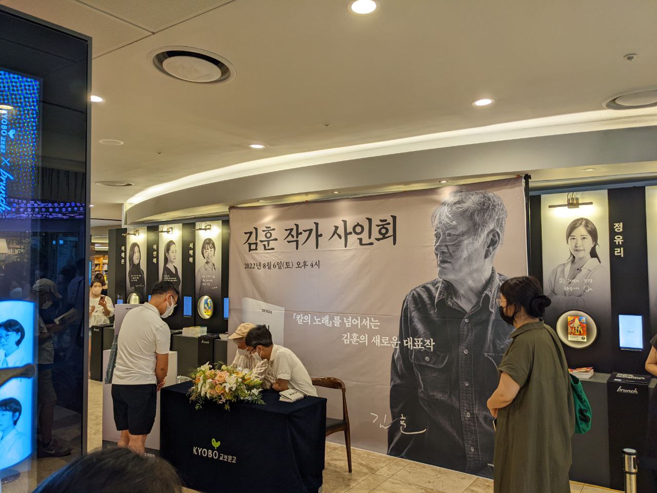 이 포스팅을 하는 시점으로부터 일주일전 책을 사려고 교보문고에 들렀다가, 그날 오후에 김훈의 사인회가 예정되어 있다는 것을 알게 되었다. 시간을 보니 12시를 조금 넘긴 시각. 책을 사서 근처 스벅에서 시간을 보내다 실물이라도 한 번 보고 가기로 했다.