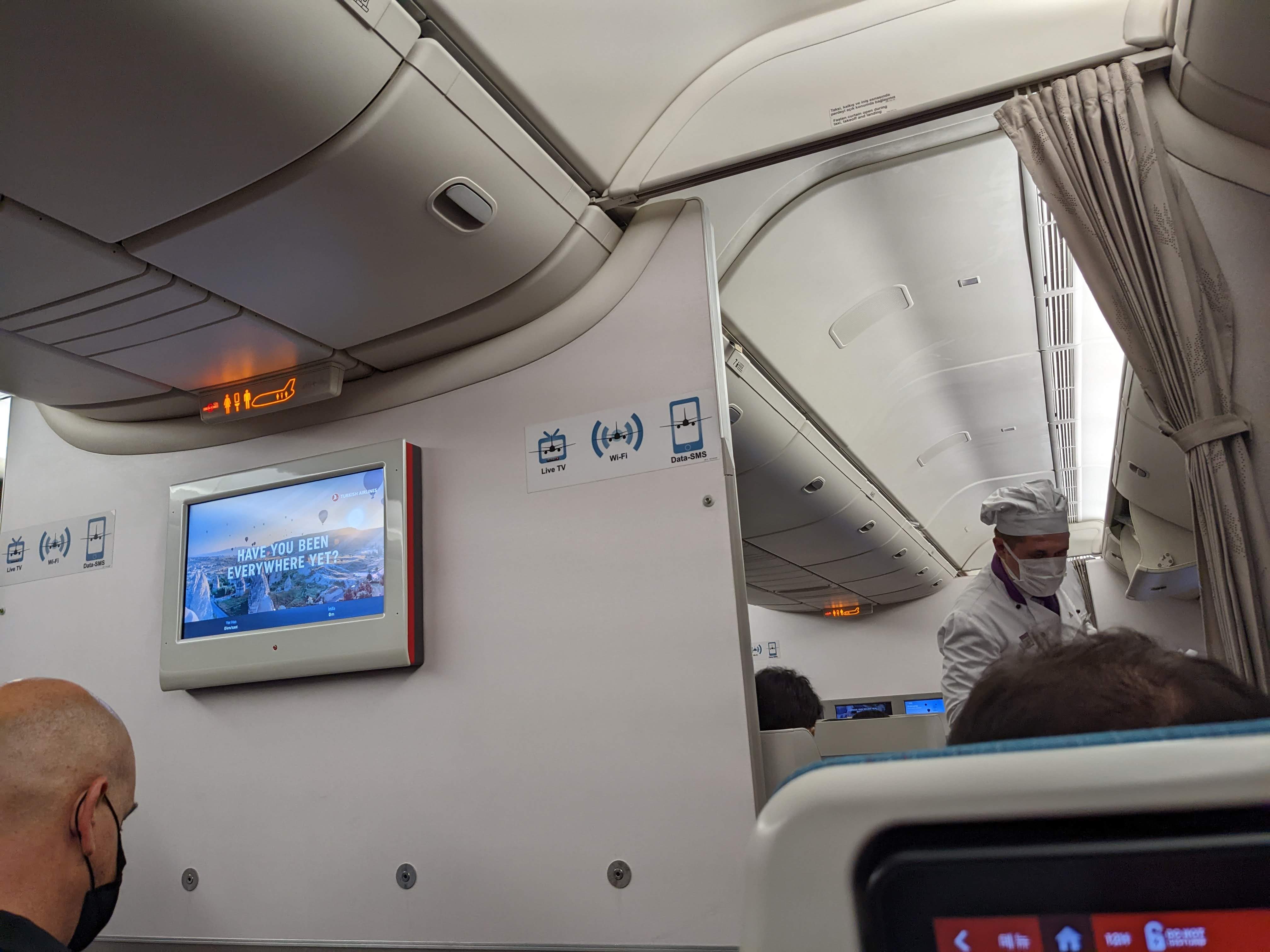비즈니스석 바로 뒤에 시작하는 이코노미 복도에 좌석을 받았다. 옆자리에 터키 여자가 온다. 이 자리냐고 영어로 물으니 한국말로 "네 맞아요, 잠깐만 짐좀 올리고요"라고 유창하게 한국말을 한다.