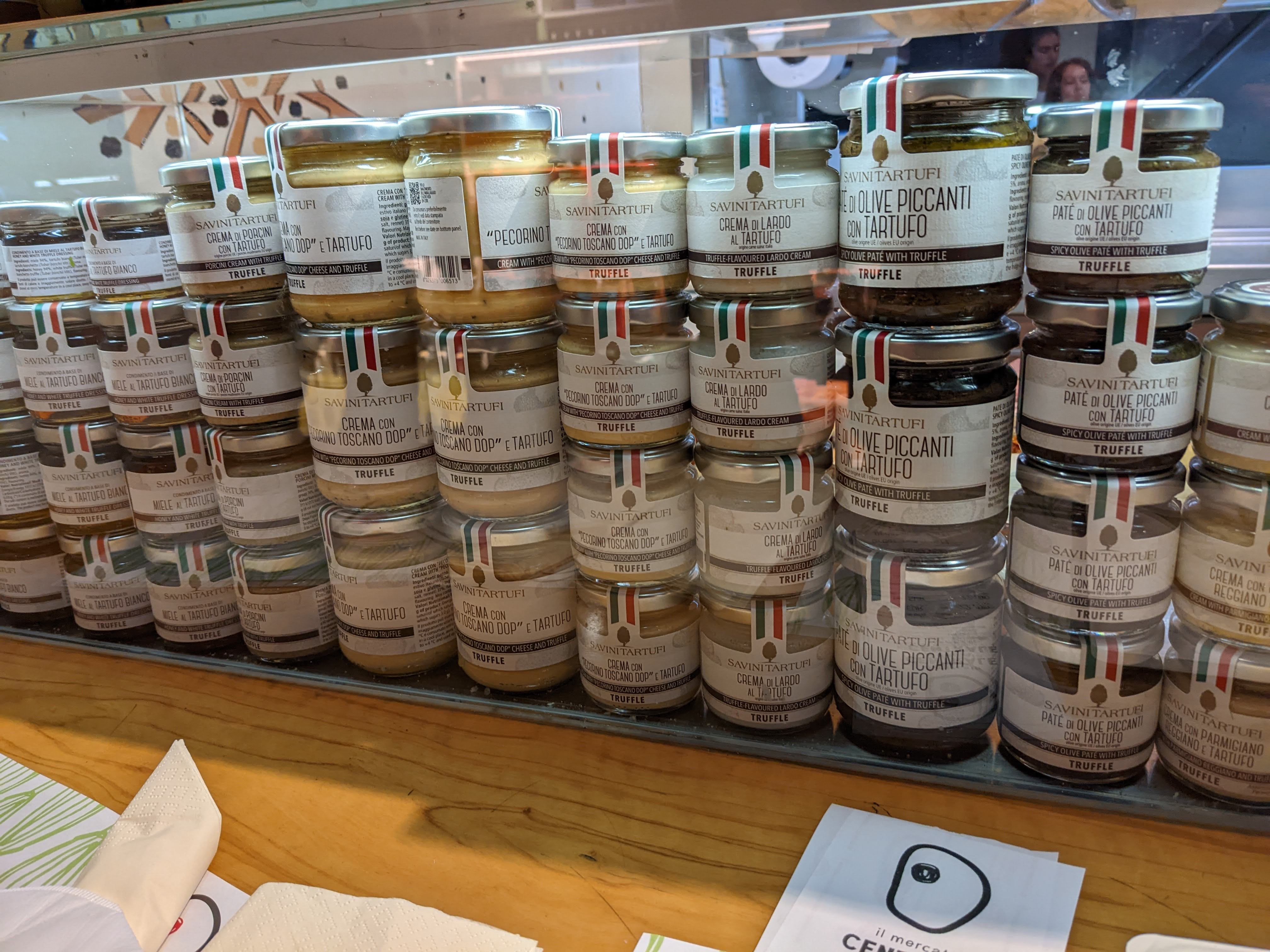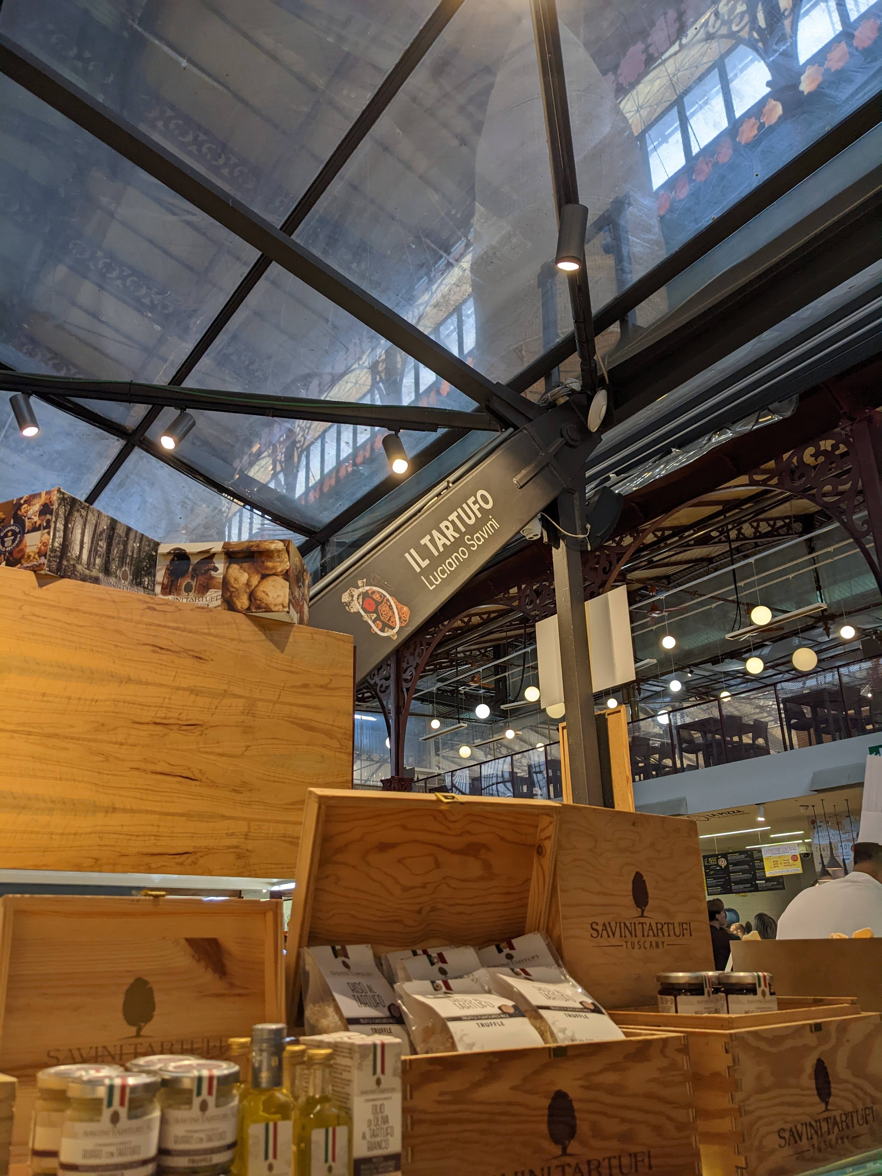 시장은 3층 건물이다. 1층에는 다양한 상점들이 있고, 2층은 일종의 푸드코트이다. 3층도 역시 식당이 있지만 2층에 가장 사람이 많다. 파스타를 먹으려 2층의 푸드 코너를 어슬렁거리다 트러플 파스타를 먹기로 했다.