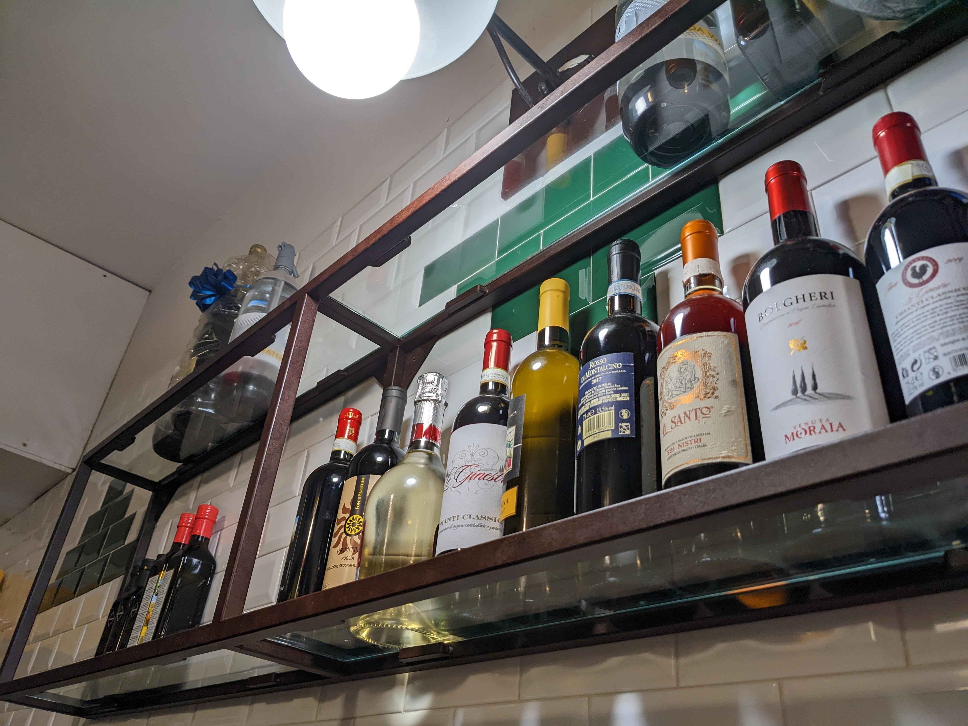 벽에 진열된 와인들이 레스토랑의 분위기를 좋게 만든다.