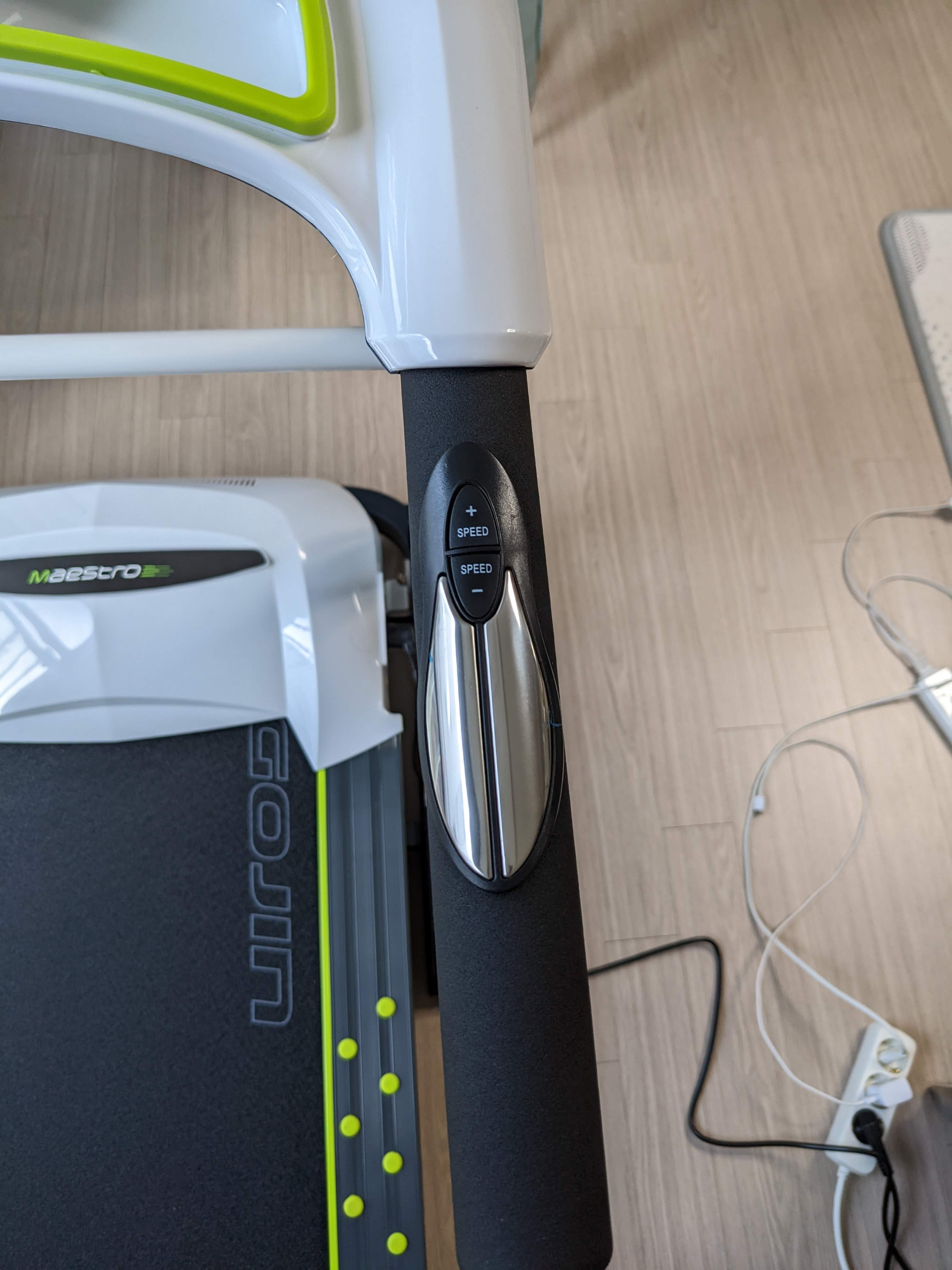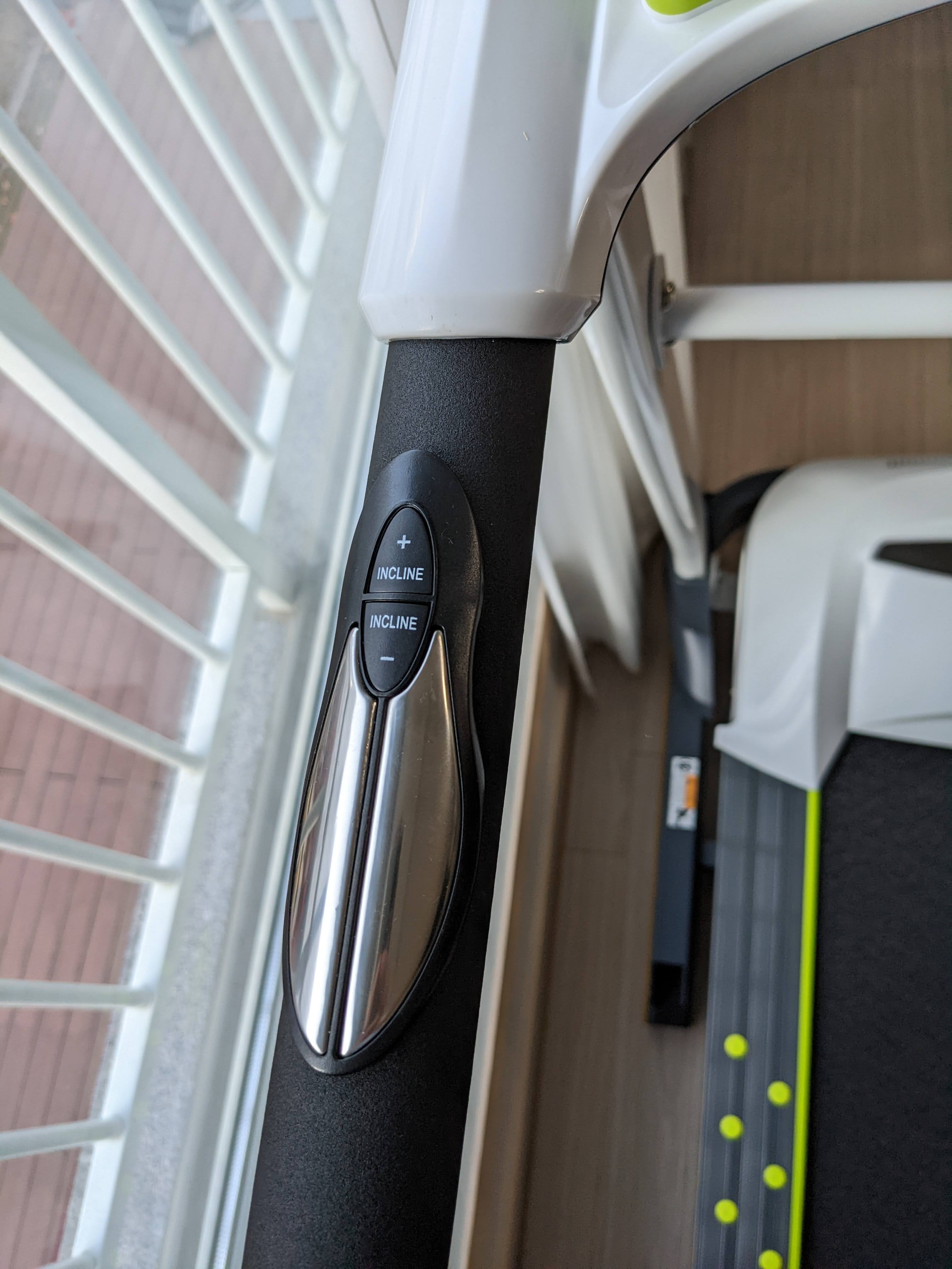 양쪽의 손잡이다. 왼쪽에는 경사도를 조절하는 버튼이 있고, 오른쪽에는 속도를 조절할 수 있다. 이 둘은 물론 컨트롤 화면에서도 조절할 수 있다.