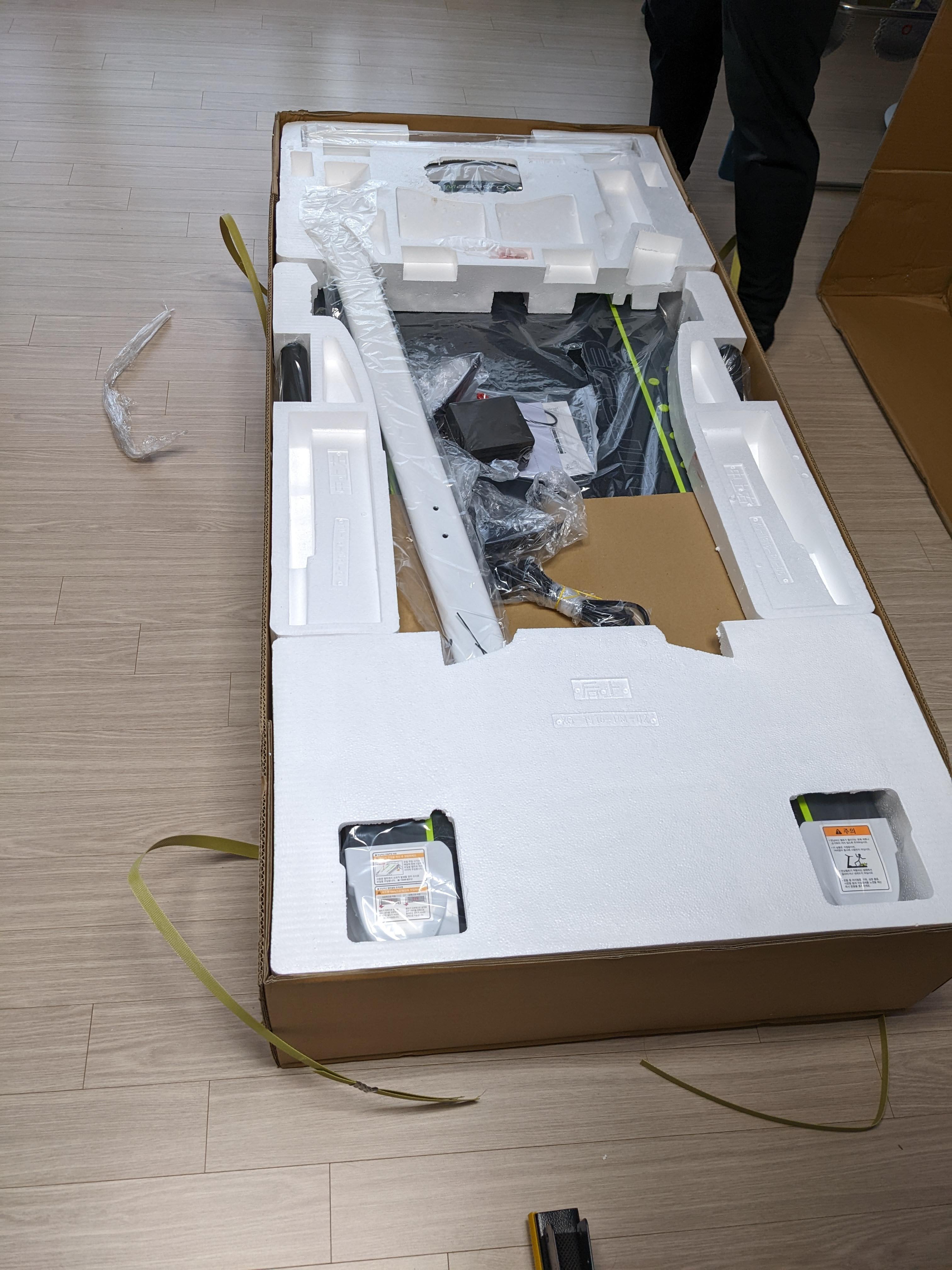 동생이 찾은 이고진이란 러닝머신을 구매했다. 네이버에서 65만원으로 주문했다. 영업일 기준으로 4-5일 정도 걸려 집으로 배달이 왔다. 이렇게 집안으로 들고 들어와 시끄럽게 조립을 한다.