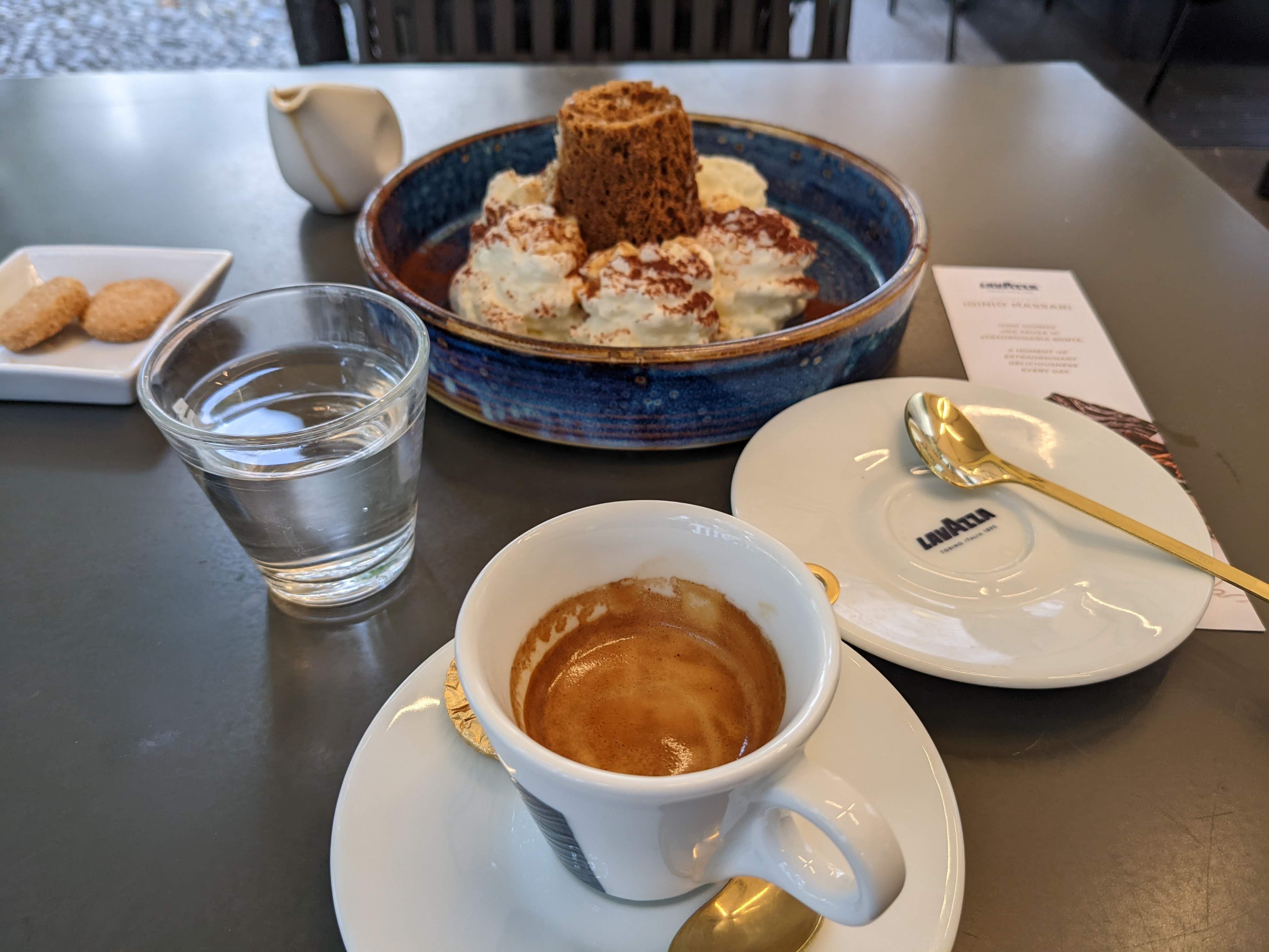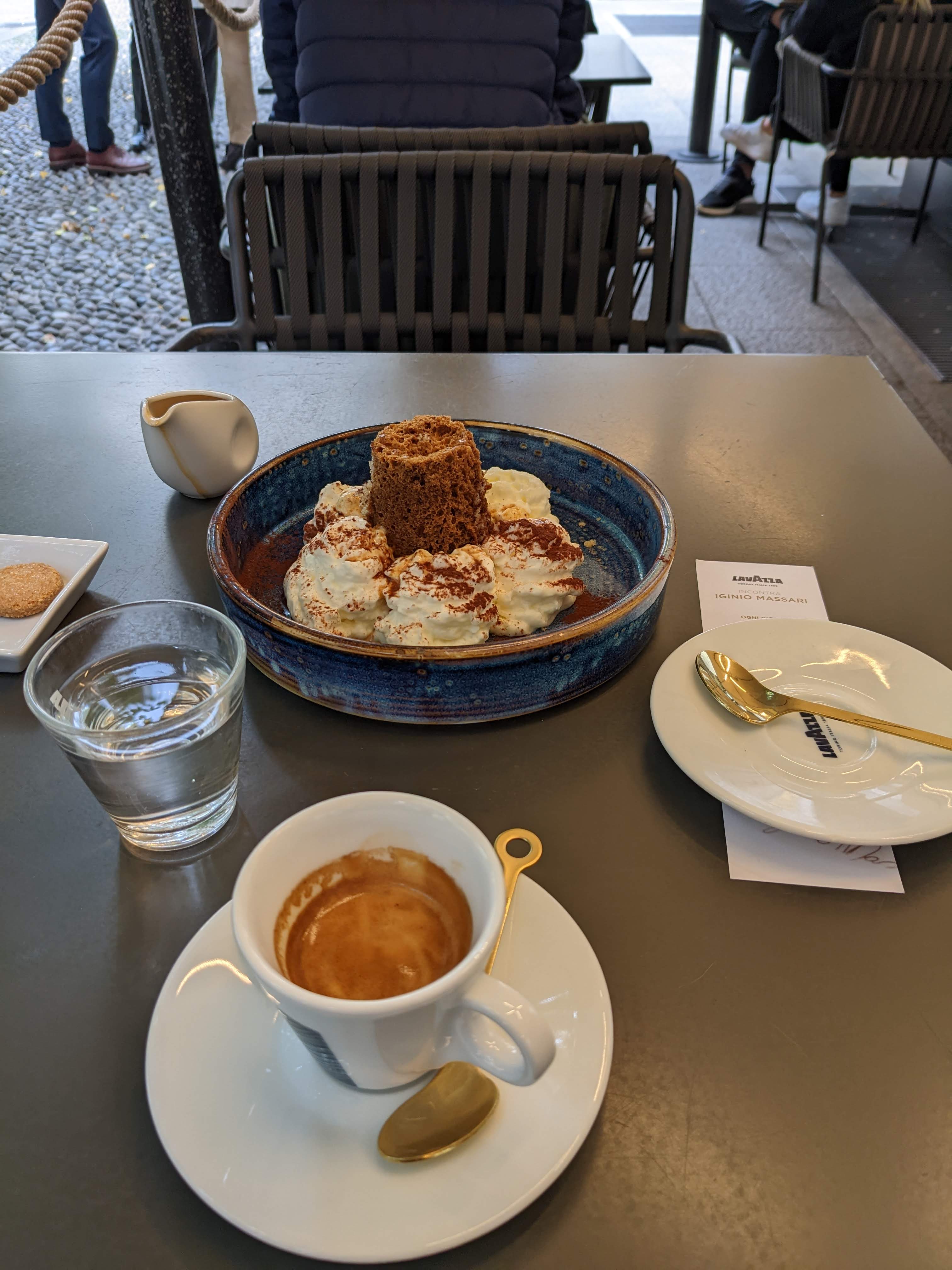 다음으로 기억나는 카페는 역시 라바짜(Lavazza)이다. 두모오 근처에 있는 곳에서 후식으로 먹은 티라미슈와 에스프레소는 정말 인상적이었다. 티라미슈가 이런 비주얼로 나올줄은 상상도 못했고, 맛은 더욱 좋았다.