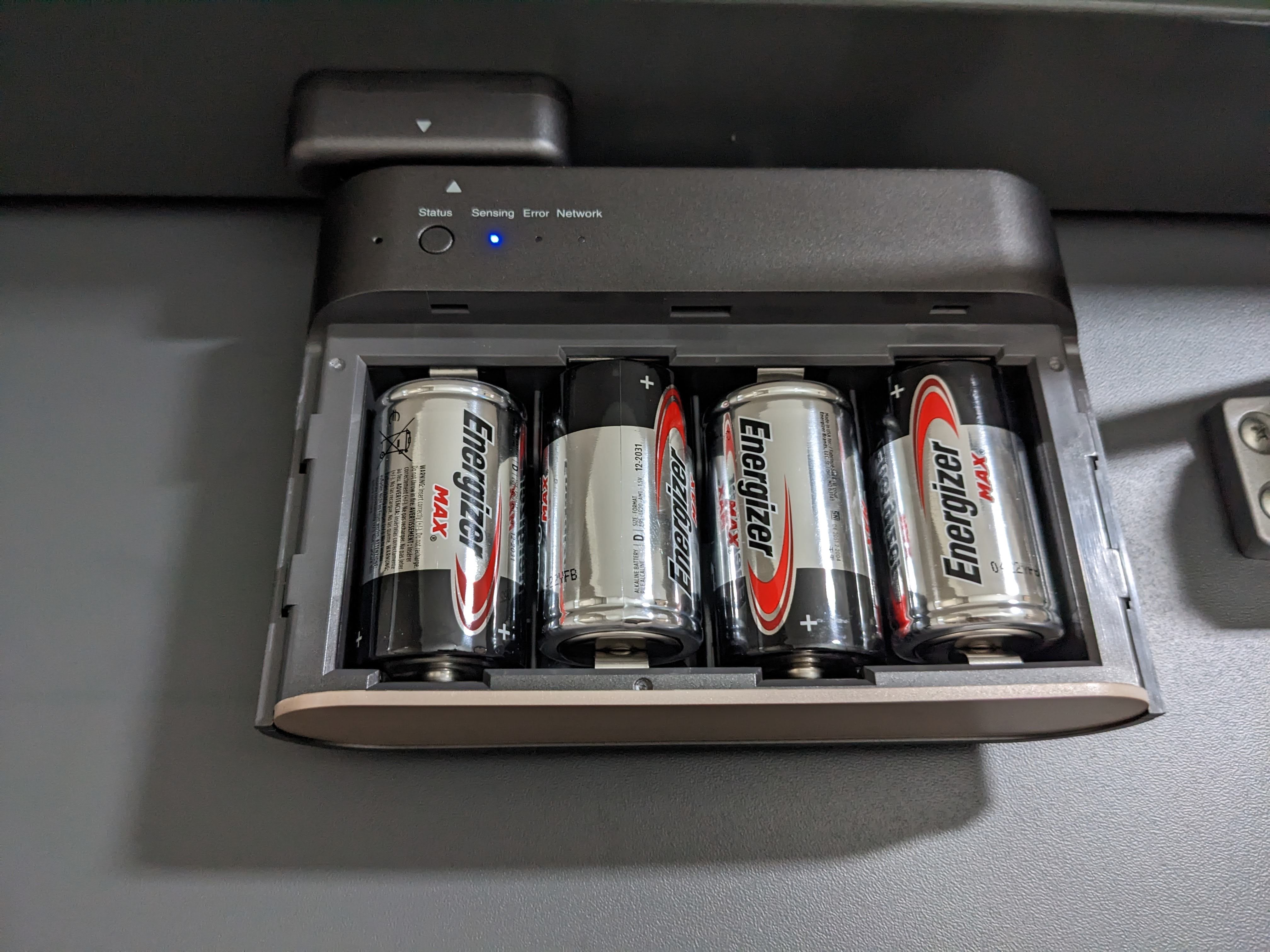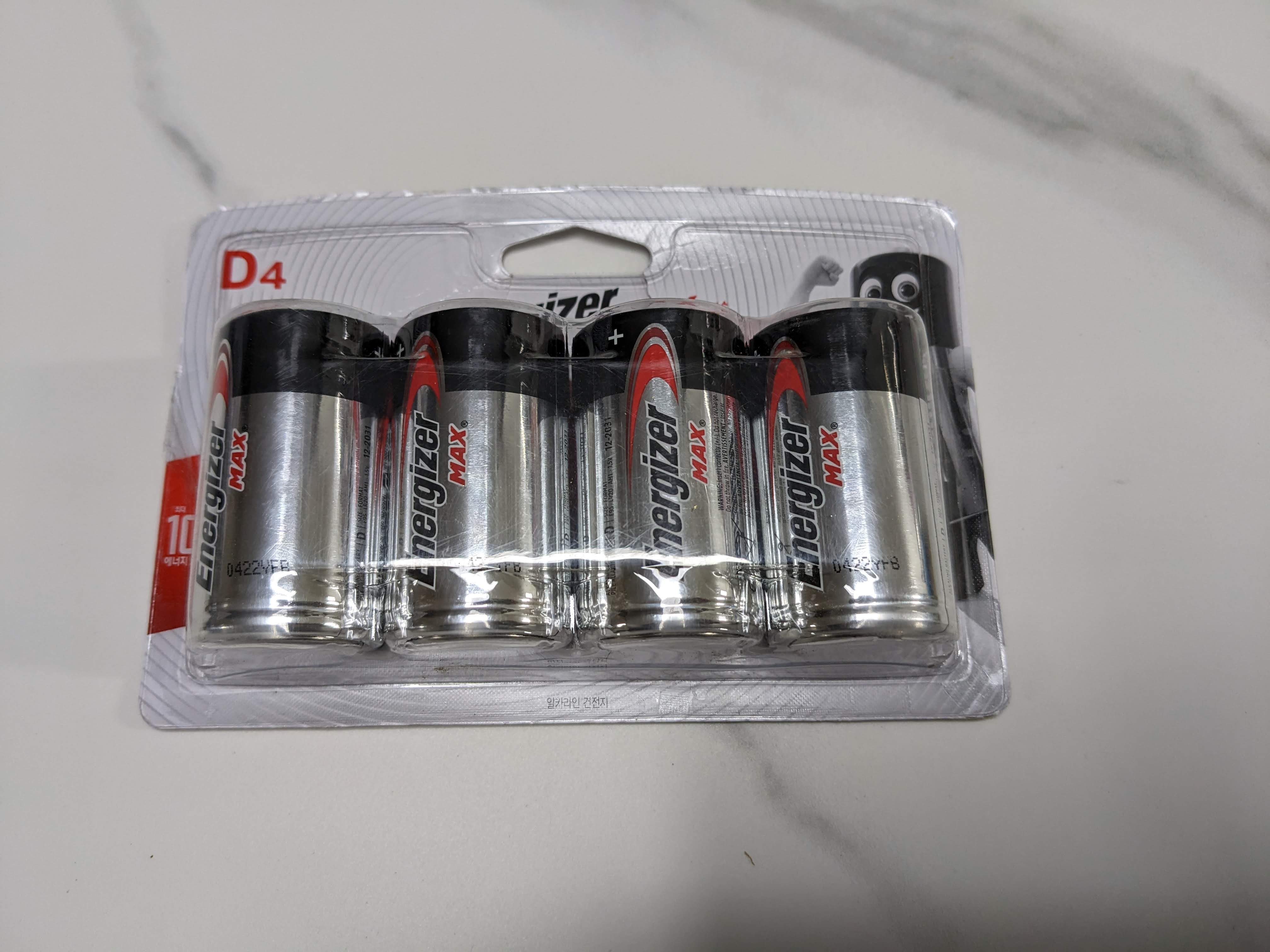 건전지 사이즈는 D형으로 가장 큰 사이즈 4개가 들어간다.