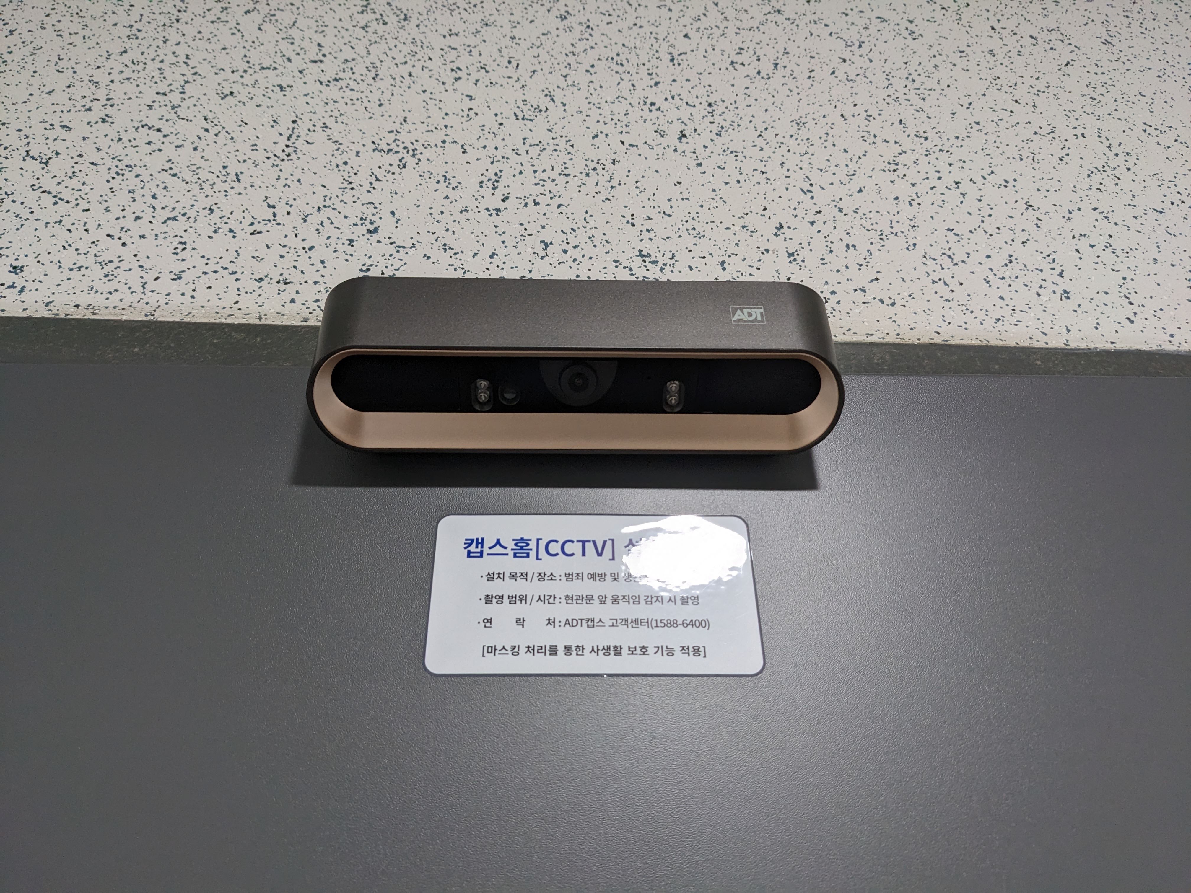 현관에 감시 카메라를 설치하고 캡스 경비 구역이라고 붙여놓았다. 비용은 한달에 18000원 대이다.