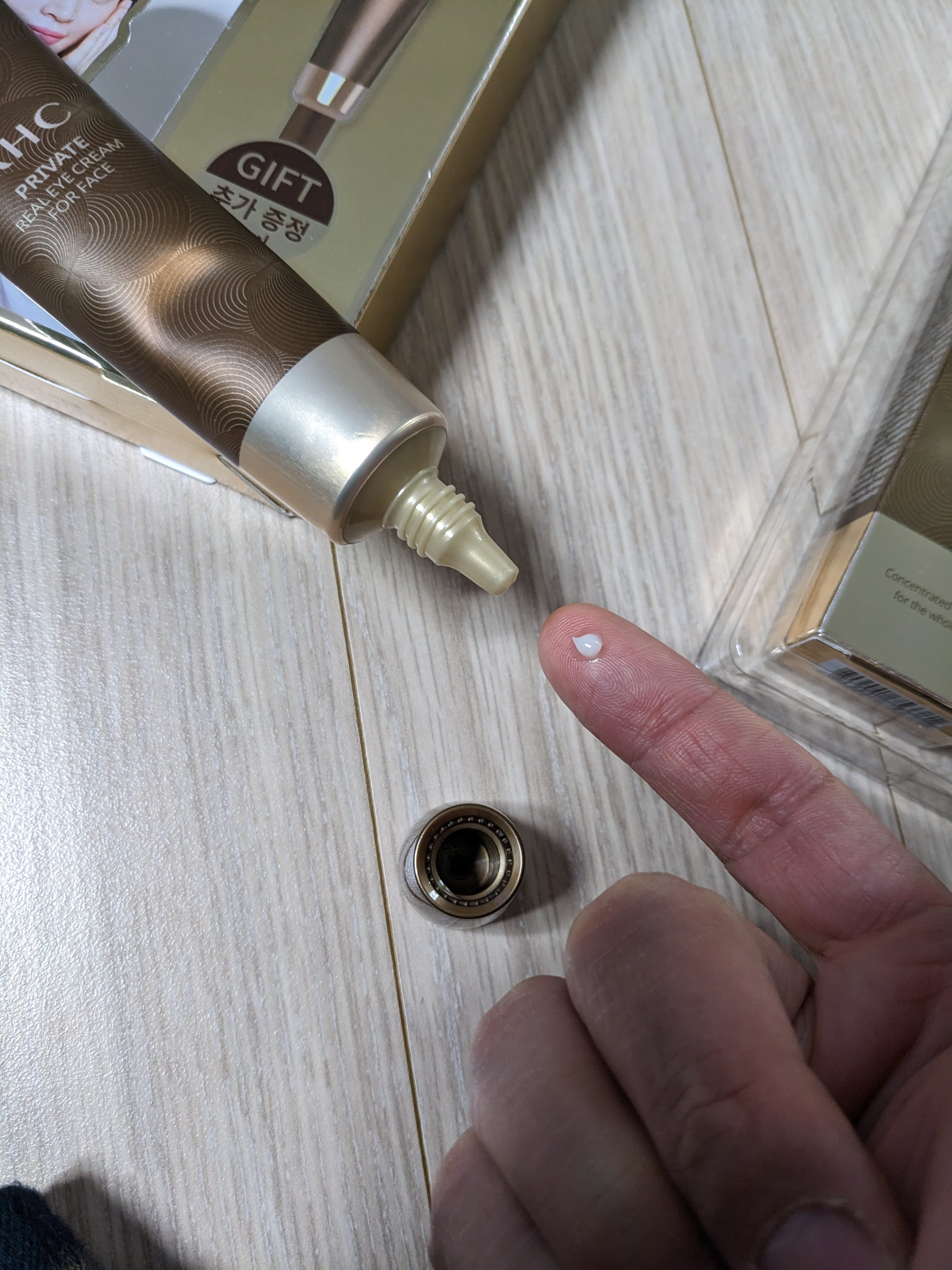한 방울 짜서 발라 보았고, 끈적이지 않고 수분감 있게 스며드는 느낌이 좋다. 세수하고 토너를 바른후 아이크림을 눈가에 바르면 좋겠다.