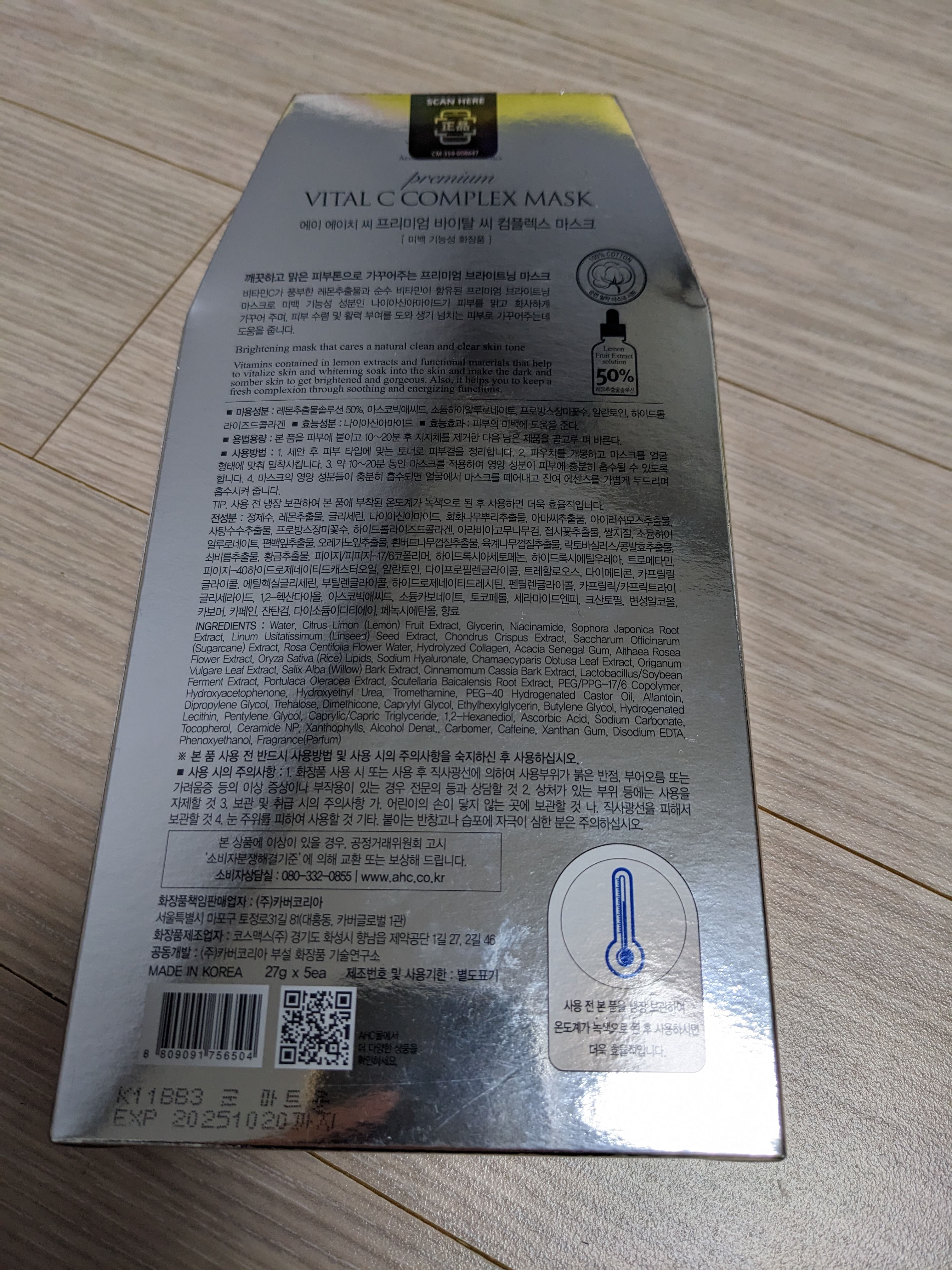 군마트에서 장을 보다 화장품 코너에서 찾은 AHC 제품이다. 하나는 국민 아이크림이라 불리는 홈 에스테틱 케어이고 다른 하나는 비타민 C 콤플렉스 마스크 팩이다.