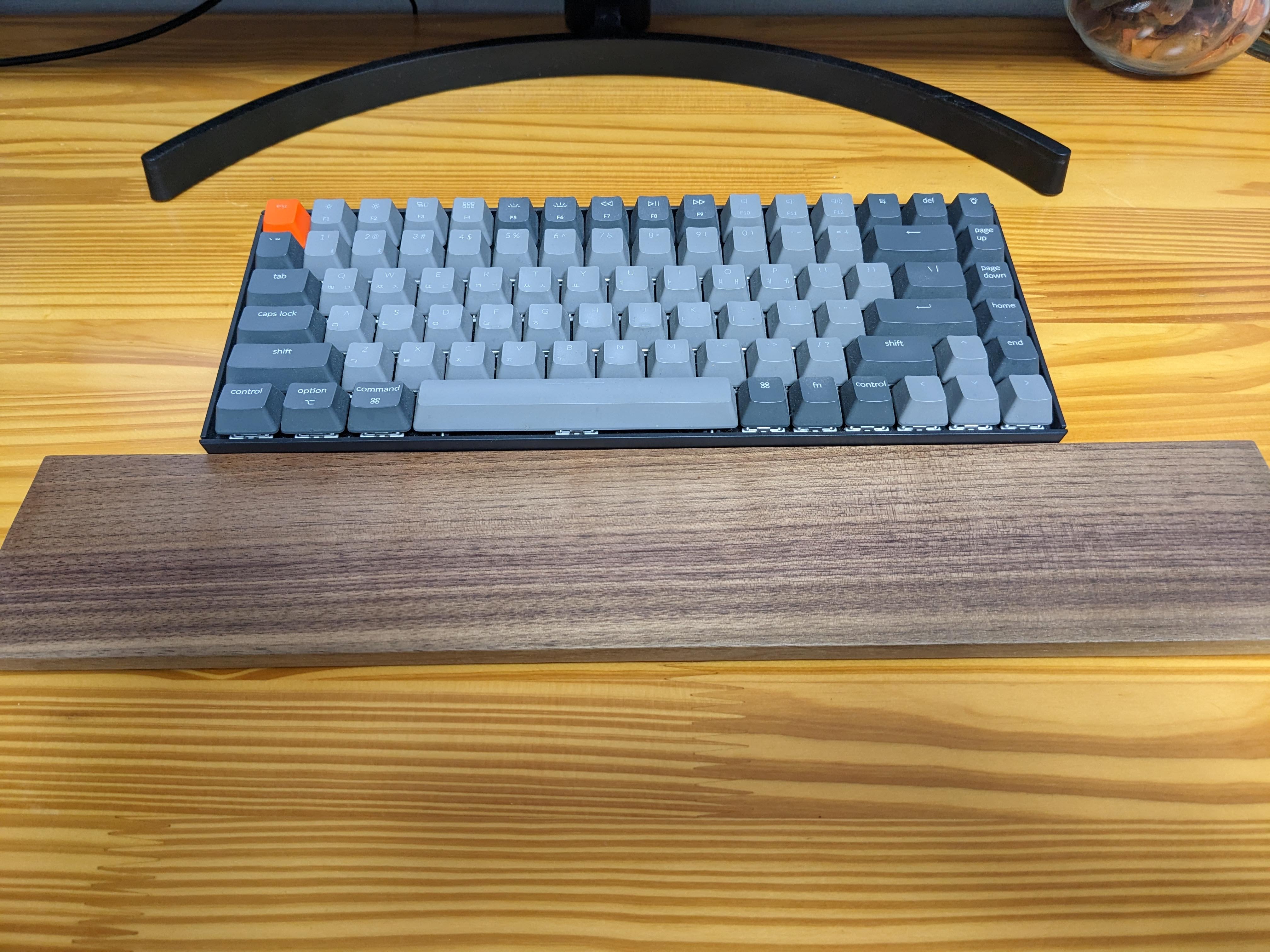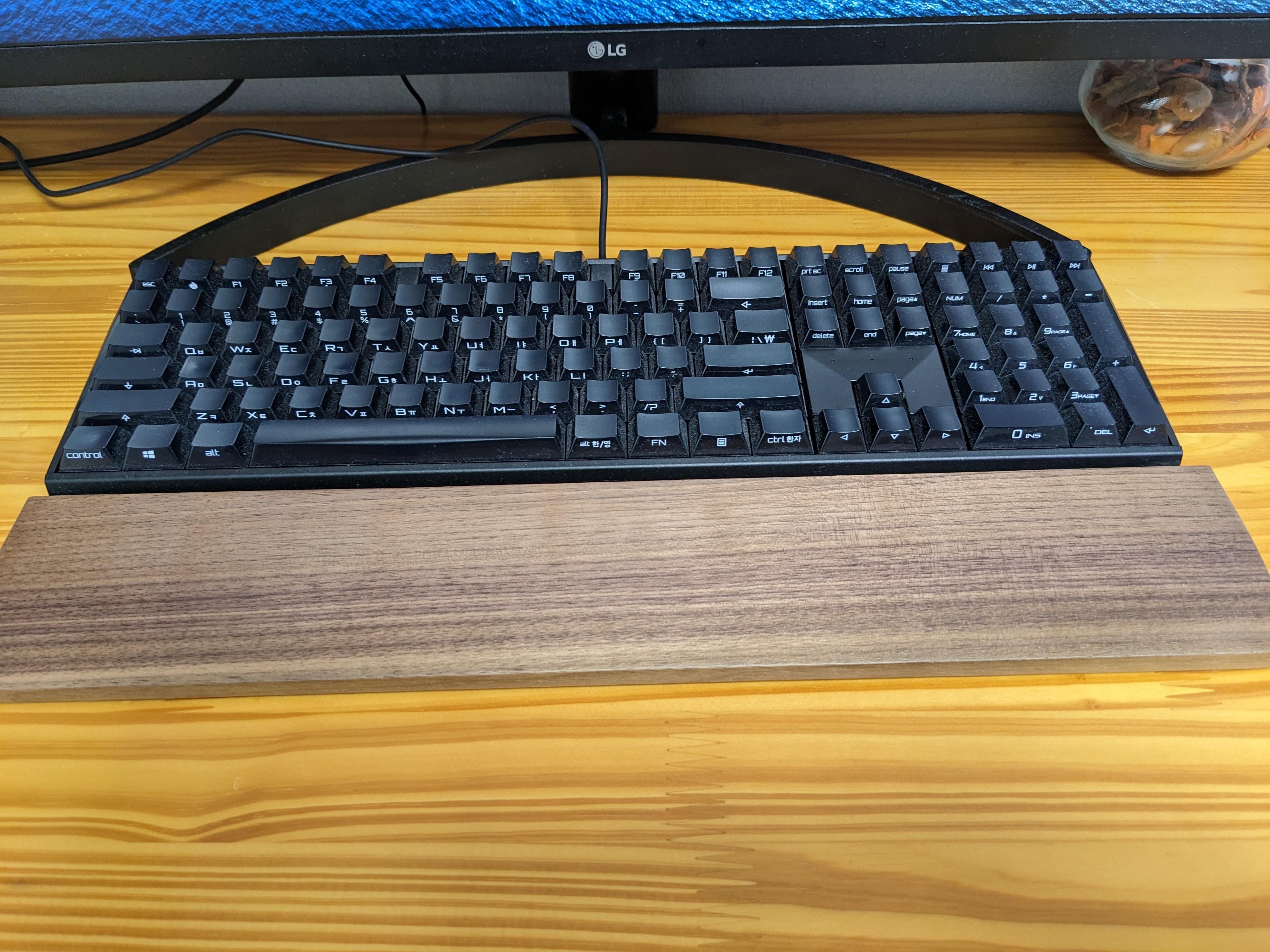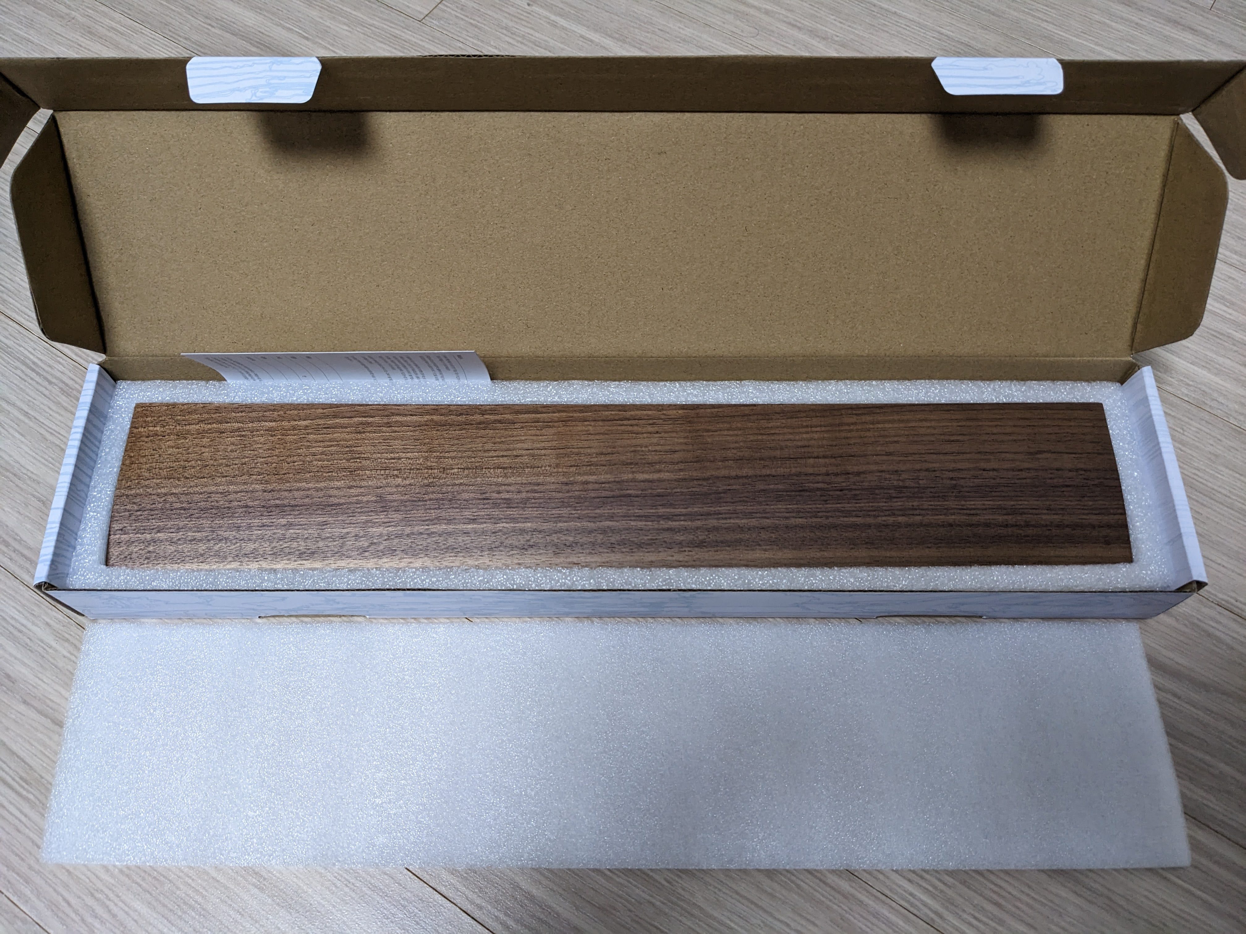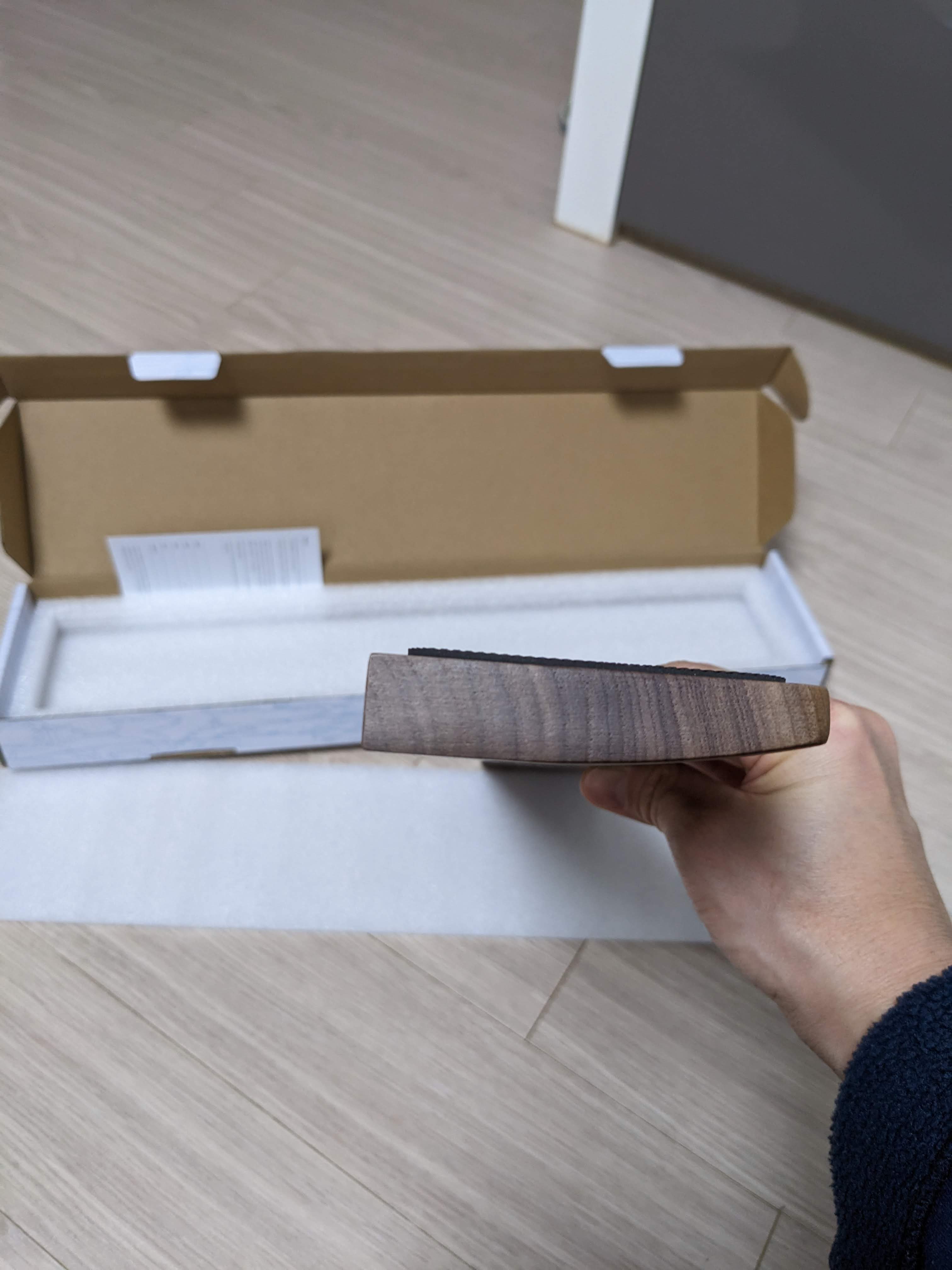 새 제품을 놓아보니 생각했던 것보다 잘 어울린다. 키보드와 색이 다른데도 어딘가 편안하고 고급진 분위기를 낸다. 나무 표면의 마감이 좋아 매끄럽고 얌전하게 쓴다면 찔릴 걱정은 없을 것 같다.