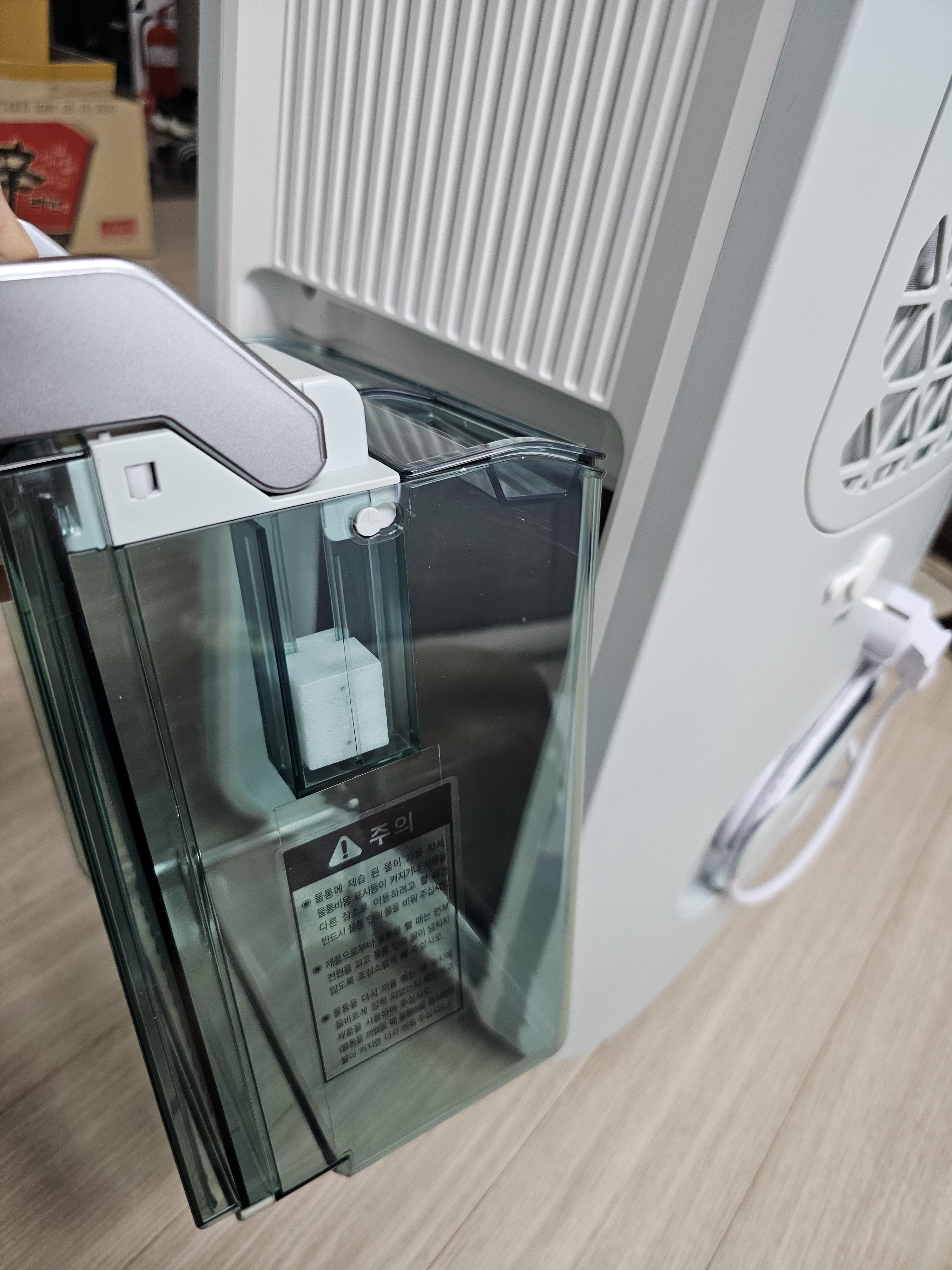 그럼에도 잠깐만 켜두어도 물통에 물이 많이 생기긴 한다. 이제 이번주부터 장마가 시작할 텐데, 빨래걸이 근처에 켜두며 효과를 관찰해 봐야겠다.