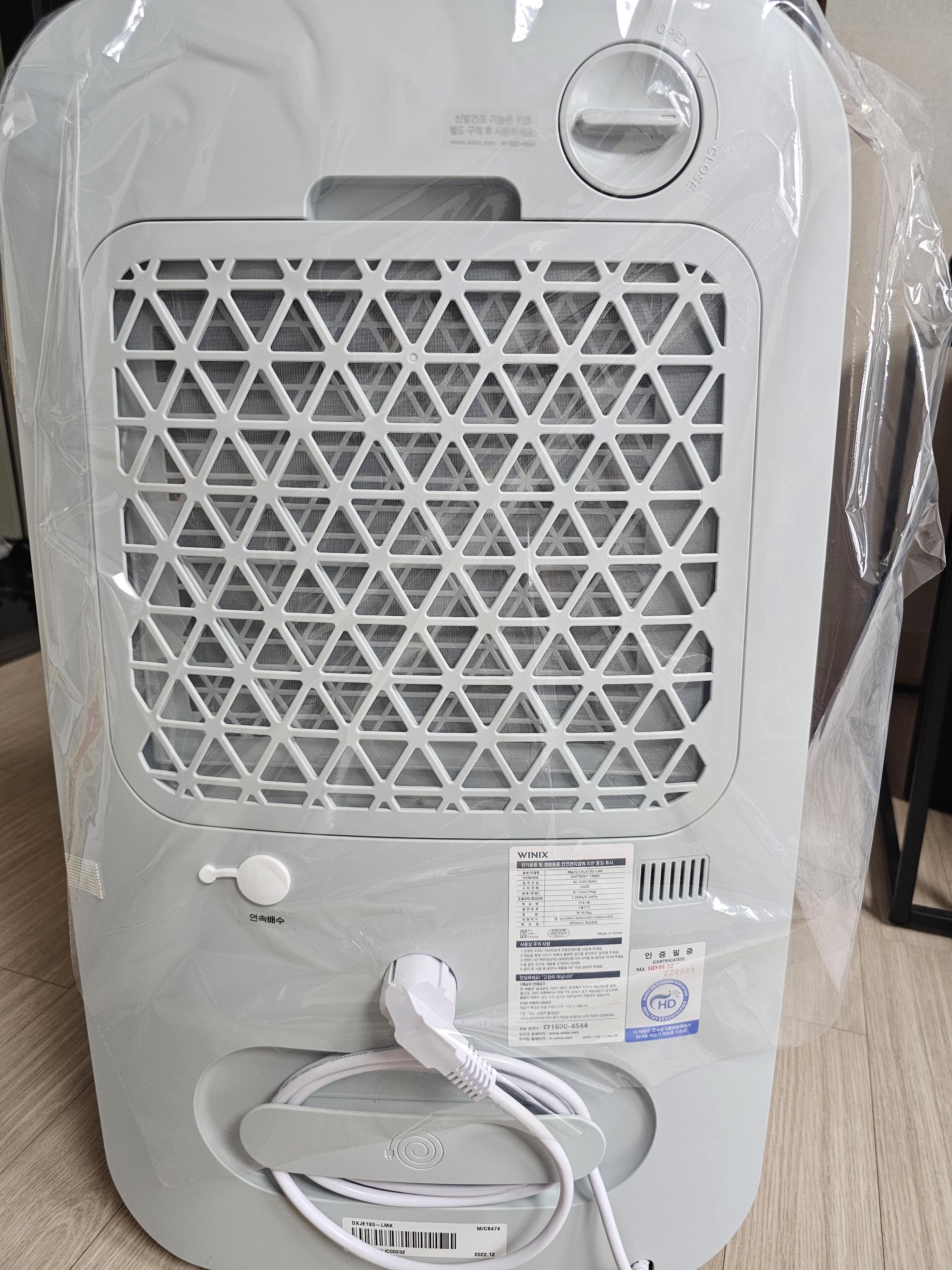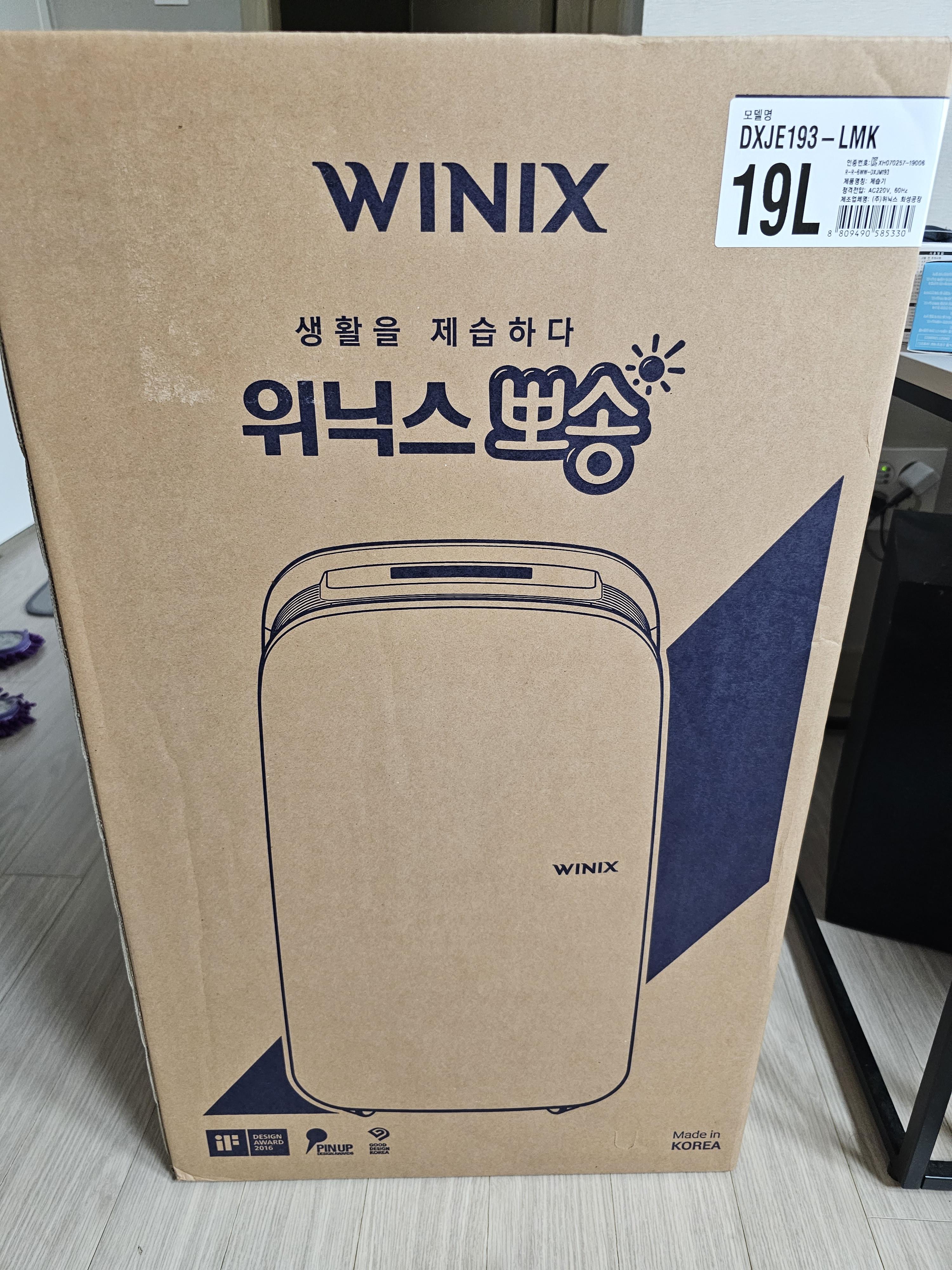 제습기는 위닉스가 유명하다고 하길래 알아보다 30평형 이상의 거실에서 추천하는 19L짜리 모델명은 DXJE193-LMK을 주문했다.