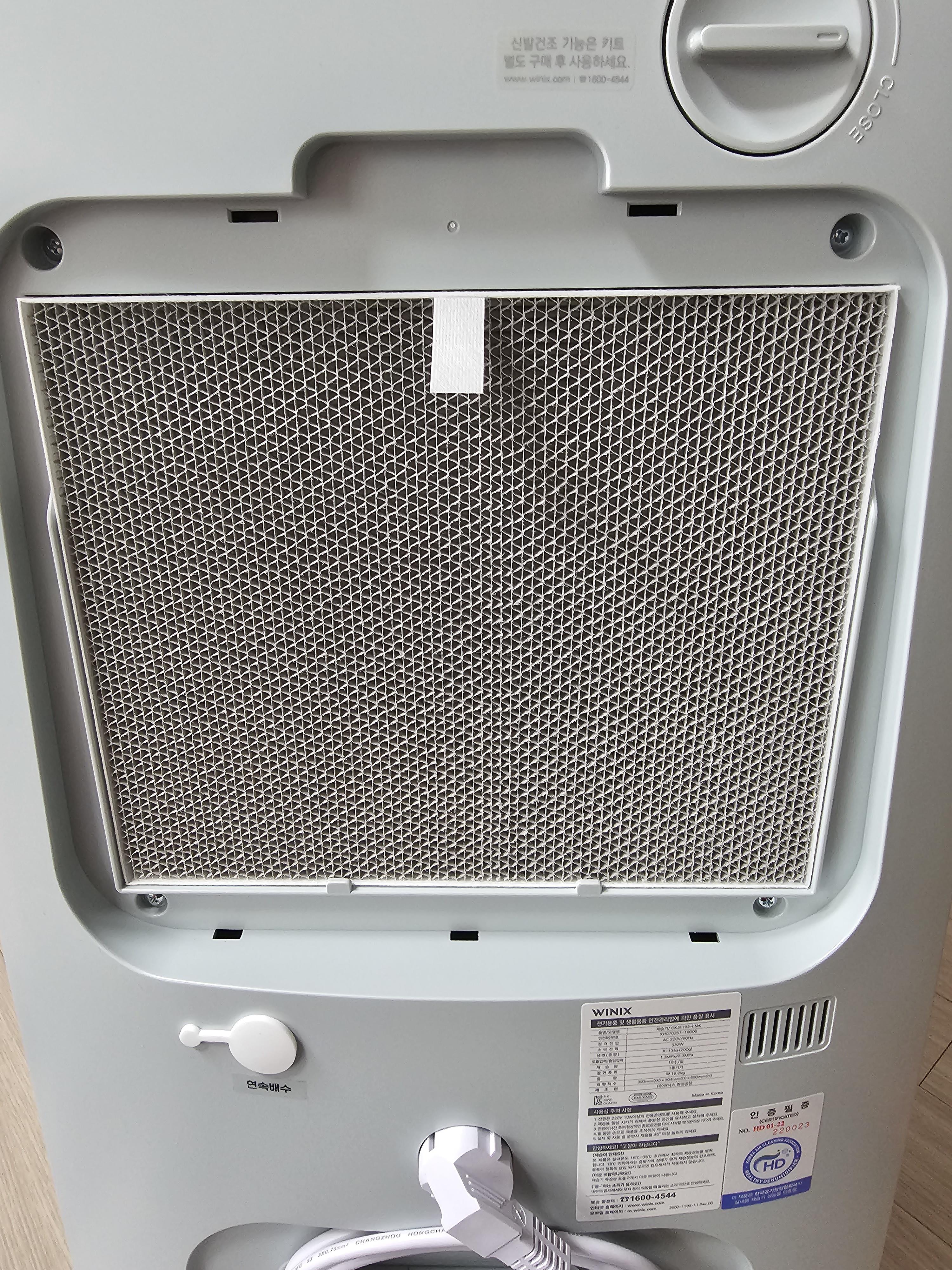 뒤에는 필터를 끼우는 슬랏이 있고 신발건조용 호스를 끼울 수 있는 홈이 있다. 단 호스는 별도 구매해야 한다.