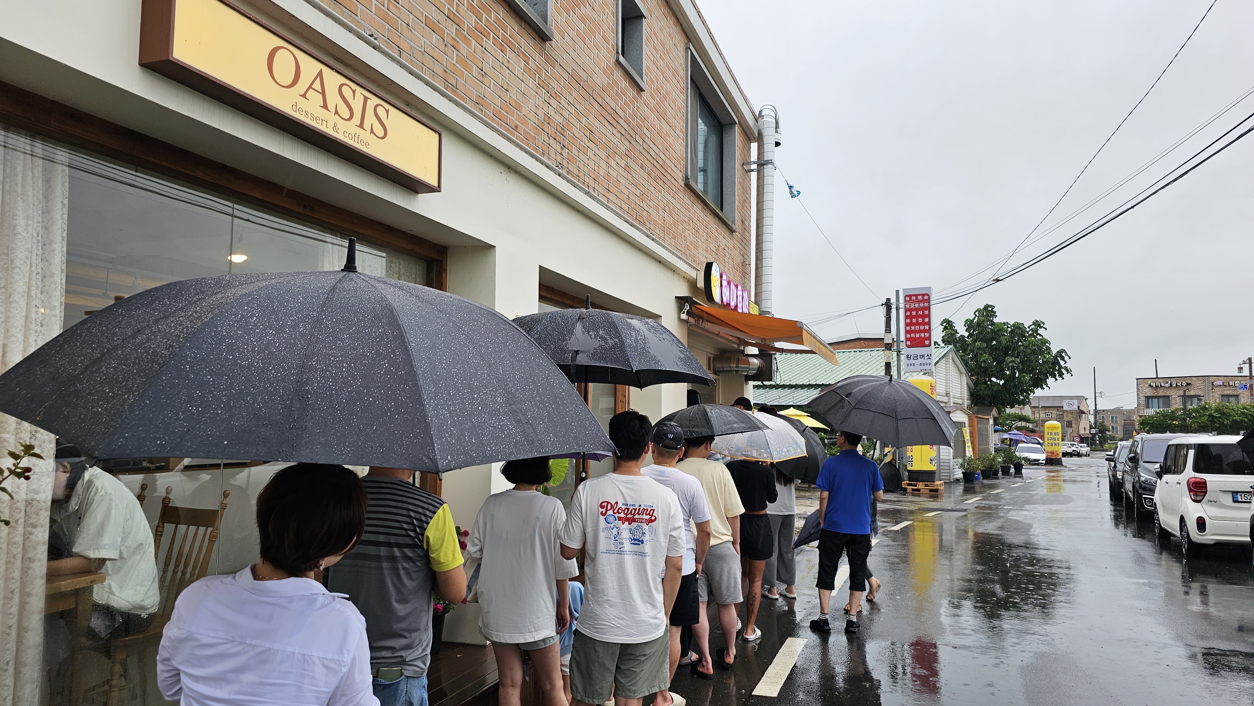 장마로 비가 오는 날임에도 꽤 많은 사람들이 줄을 서서 기다리고 있다.