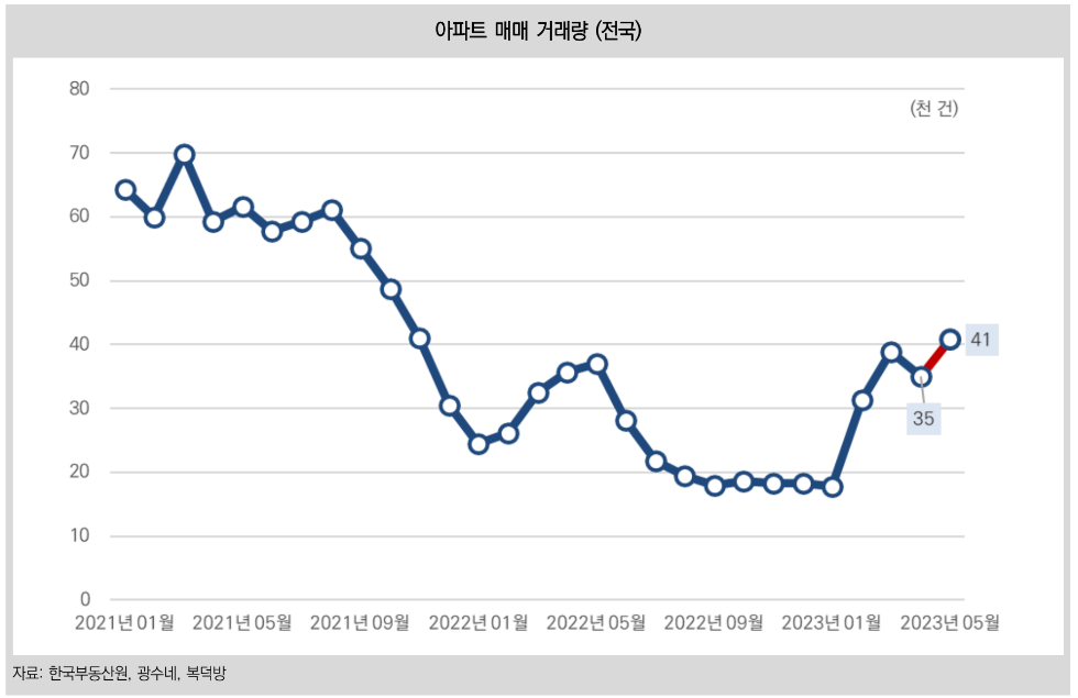 첫째는 바로 금리 인상으로 떨어진 아파트 가격이다. 가격이 떨어져 수요가 증가했고 거래량이 늘었다는 것이다.