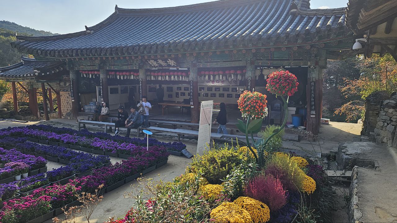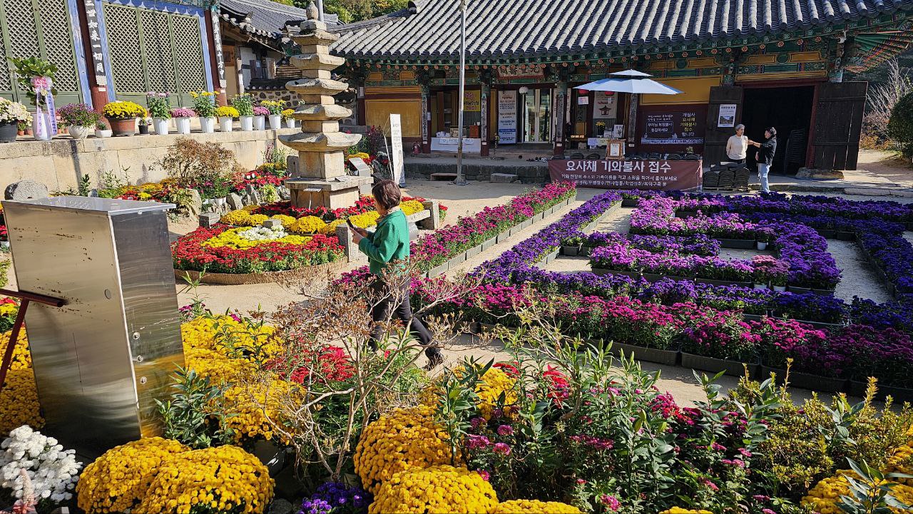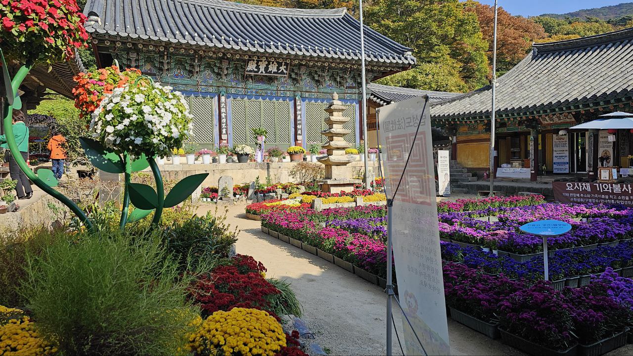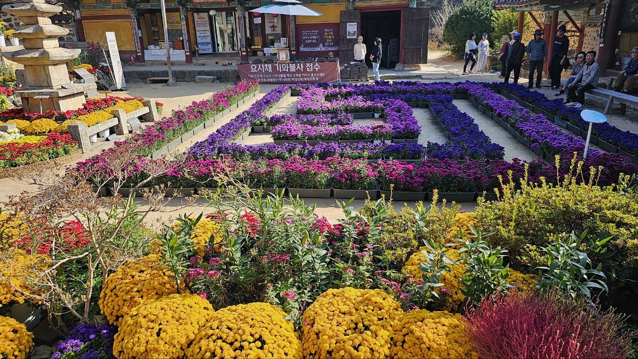 그렇게 주변의 변화를 천천히 음미하며 개심사에 도달하니 국화정원 축제가 열려있다