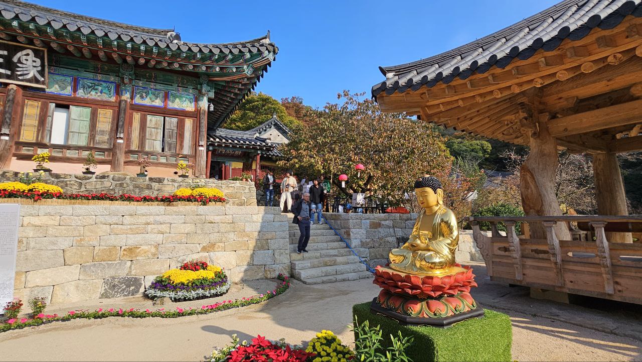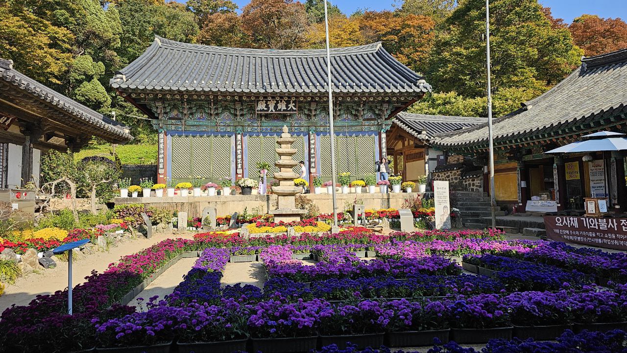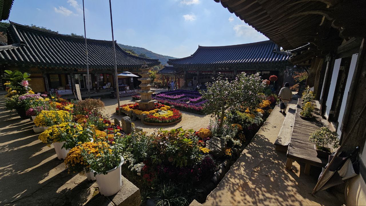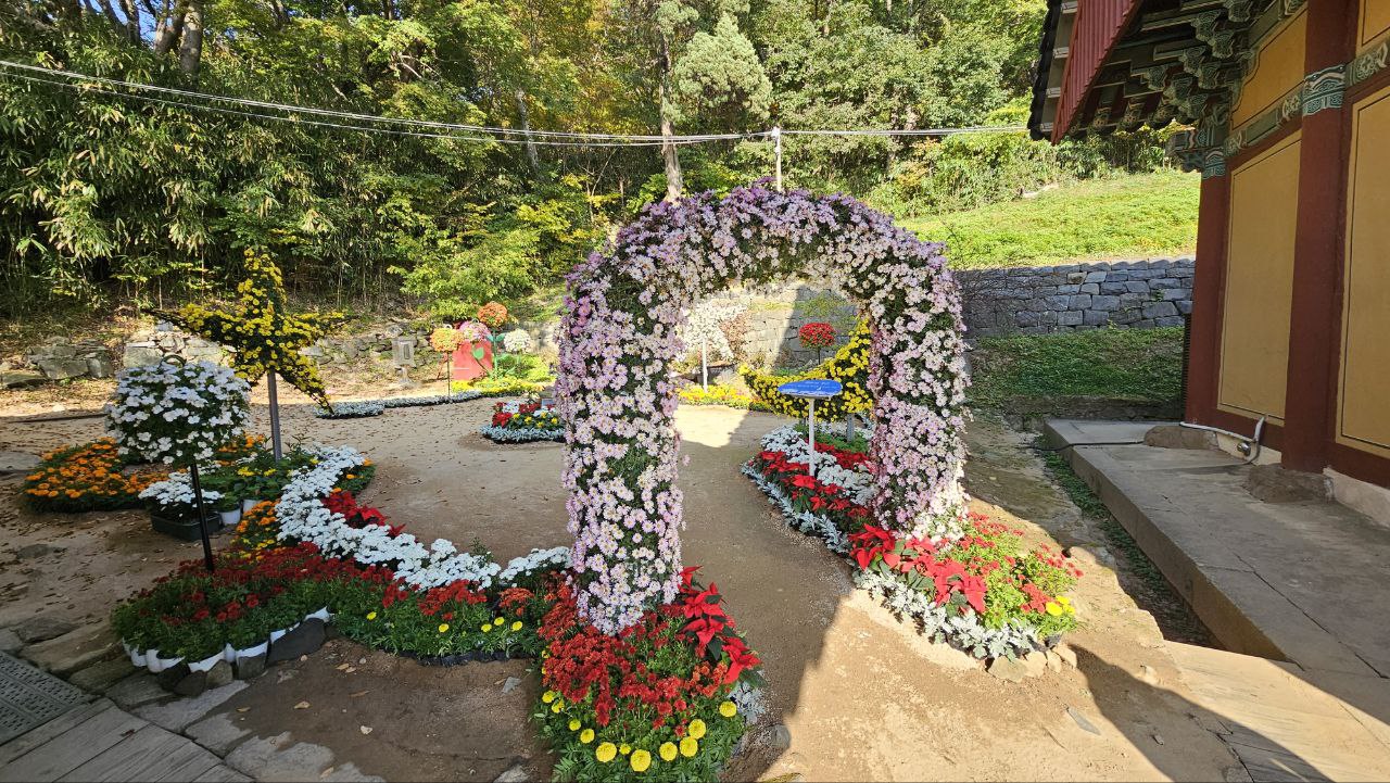 그렇게 주변의 변화를 천천히 음미하며 개심사에 도달하니 국화정원 축제가 열려있다