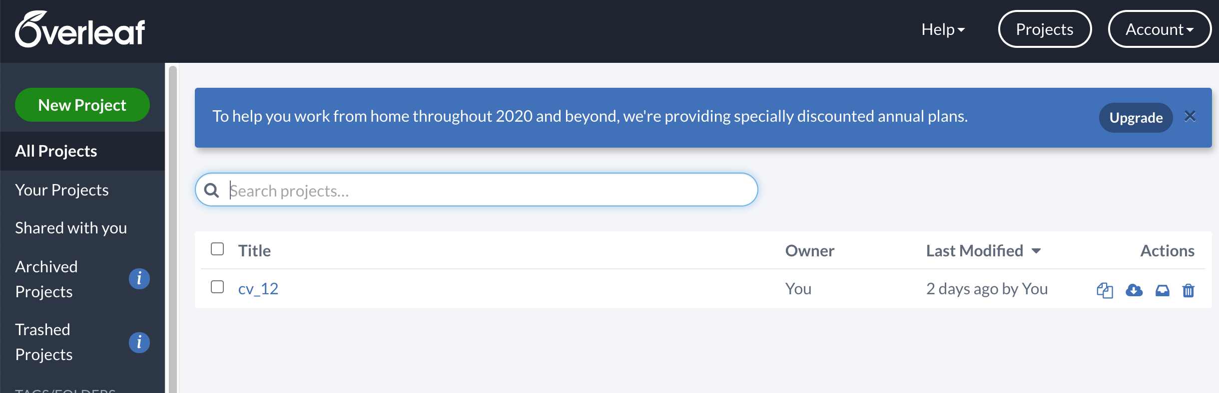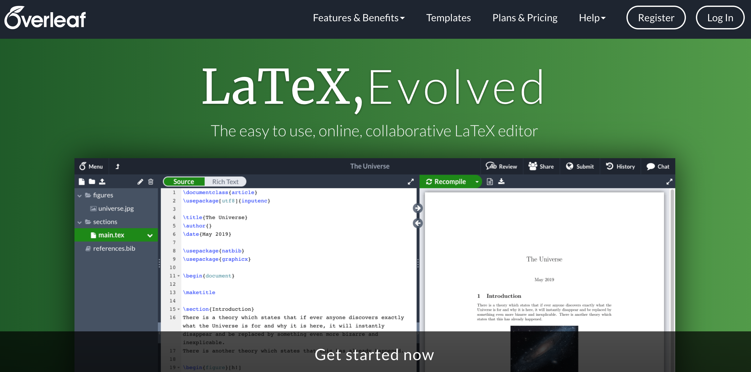 1. Overleaf 라는 사이트를 추천한다. 메인 화면은 다음과 같다.