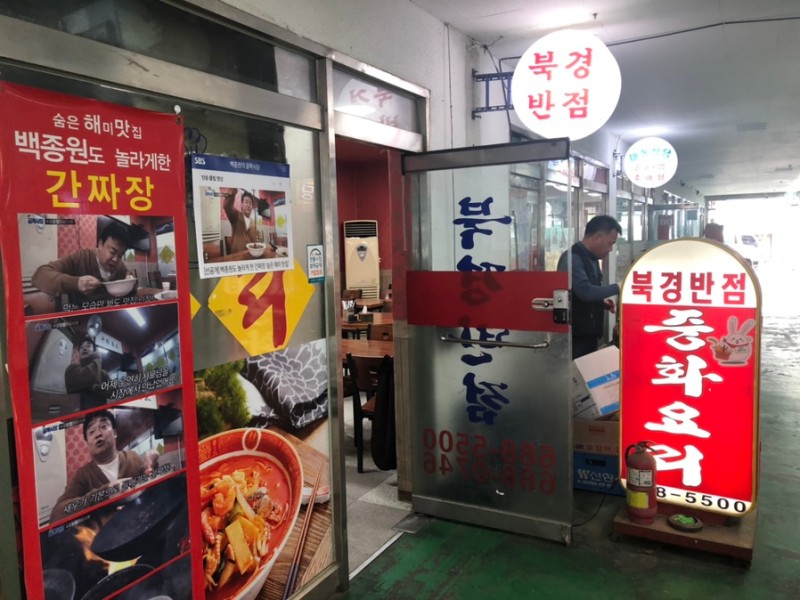 해미 읍성 앞 상가건물 안의 북경반점을 소개합니다. 골목식당에서 백종원 아저씨가 찾았던 집이라고 한다. 가게 안과 밖에 그가 방문했을 때 찍은 사진들이 많이 붙어있다. 이곳은 보통 간짜장으로 유명하다. 그렇지만 짬뽕과 볶음밥을 시켜봤다.
