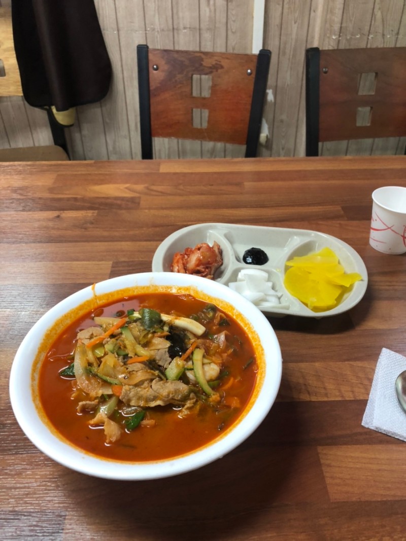 짬뽕이 아주 얼큰하게 잘 나온다. 홍콩반점 0410 느낌이 난다. 대패 삼겹살과 새우와 각종 야채가 실하게 들있어 얼큰하다.